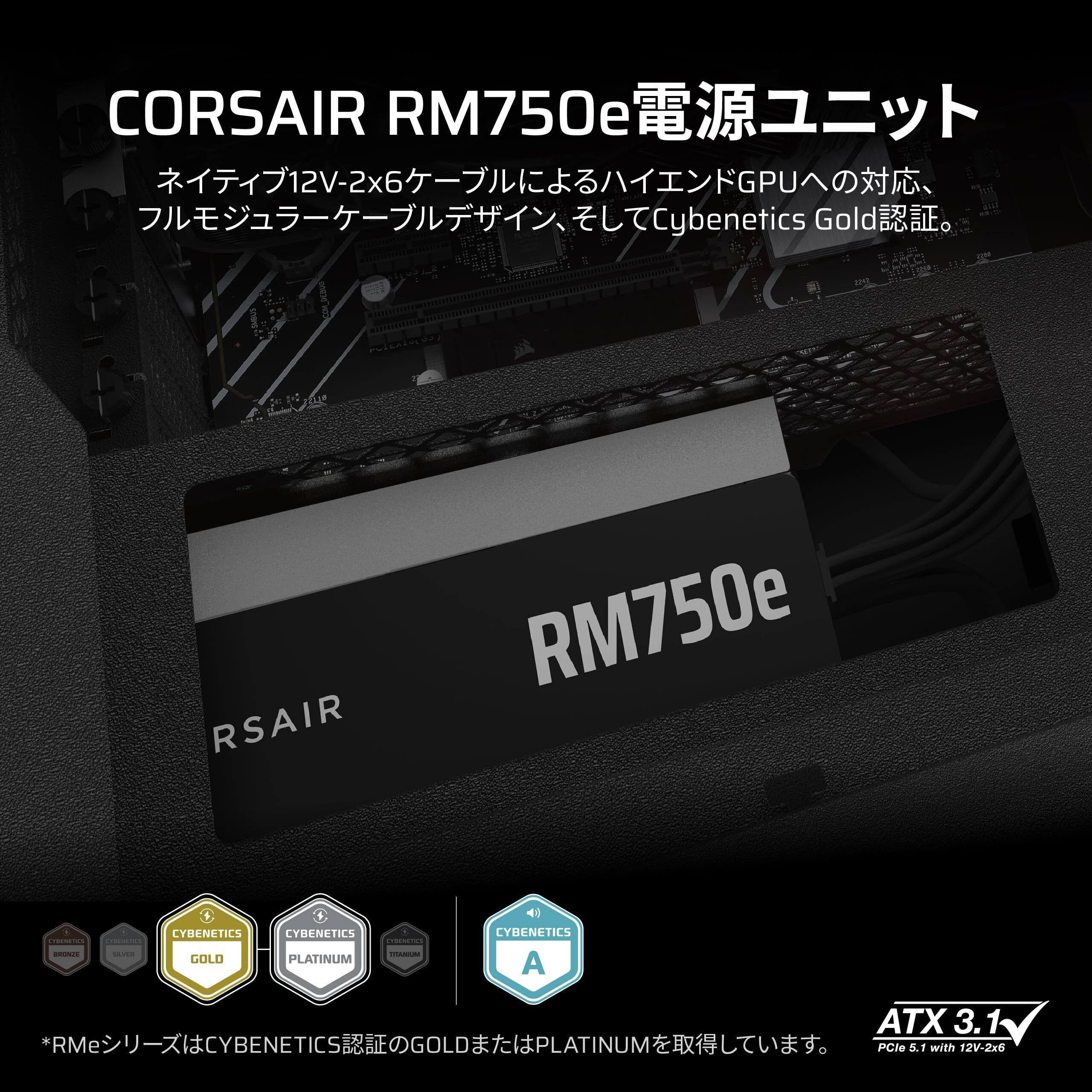 CORSAIR RM750e 2025モデル PC電源ユニット 750W PCIE 5.1 対応 ATX 3.1 認証済 フルモジュラー 12V-2x6 ケーブル付属 CP-9020295-JP