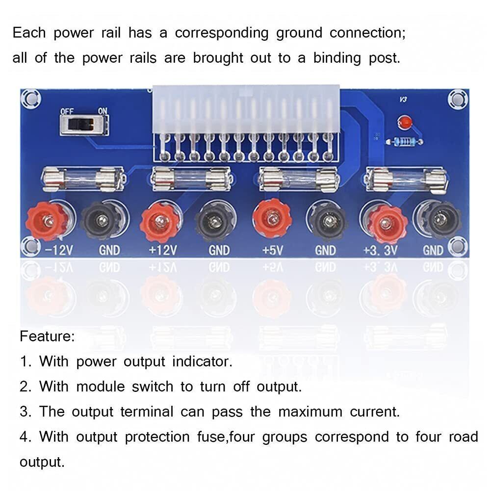 Ren He 2個セット XH-M229 ATX 電源 ボード 電源取り出し モジュール 電源検証ボード 電源インジケータ 電源スイッチ 電源出力端子付き 24ピン デスクトップ PC 電源アダプタボード