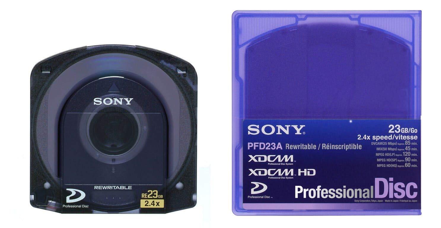 プロフェッショナルディスクは新開発の光ディスクに青紫色レーザー技術を採用、ディスク径はCDやDVDと同じ12cmながら、23.3GBの大容量記録を実現しました。
