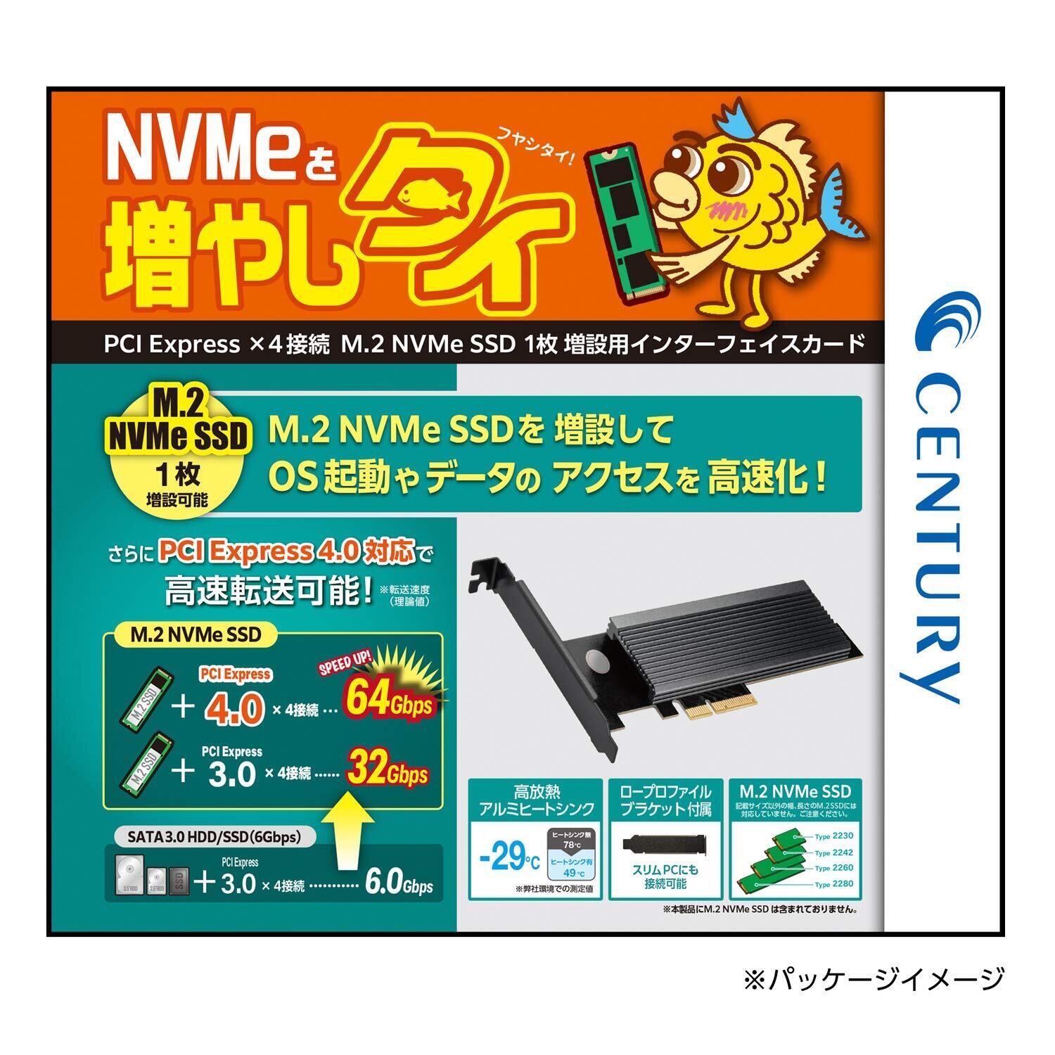 センチュリー PCI Express ×4接続 M.2 NVMe SSD ×1枚増設用インターフェイスカード CIF-M2NV_FP