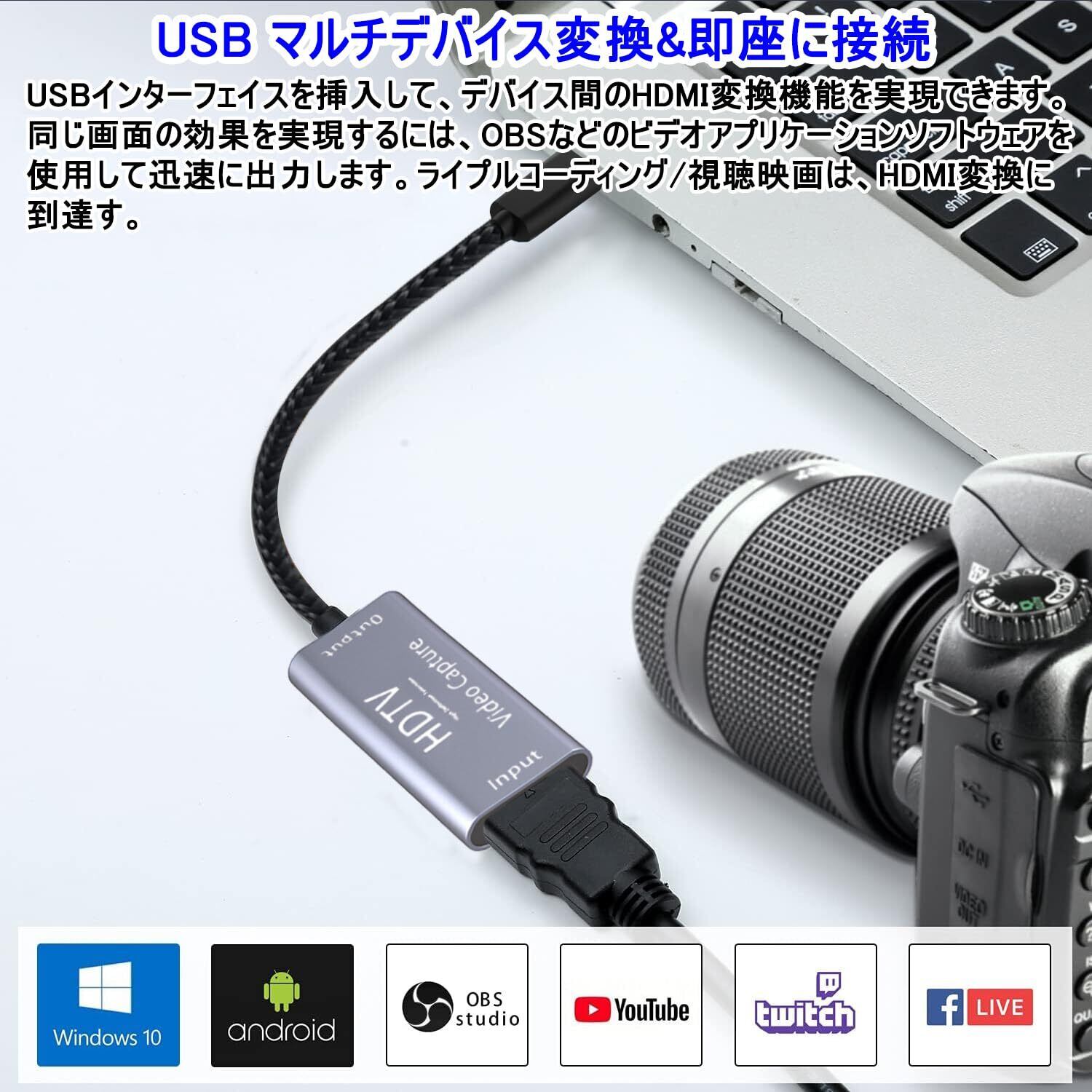 【USB3.0 HDMIキャプチャーボード】 本製品はUSB3.0出力端子が備えたキャプチャーボードであり、HDMI入力用デバイスから録画した映像を簡単にパソコンに保存できます。パソコン、スマホ、ゲーム機、カメラなどの入力デバイスに接続するだけで、動画や画像を録画してパソコンに保存することができます。出力した映像を保存するのに便利です 毎日の生放送/ゲーム録画/ビデオ編集/画像同期に適しています。誰でも手軽に高画質の動画や静止画を記録できるようになります。ビデオとオーディオの録音やライブ ストリーミングに最適です。注:車の画面に使用しないでください、使用できません。この製品はUSB3.0 HDMI変換録画に属しており、使用する場合はOBSを録画するための指示に従ってください。