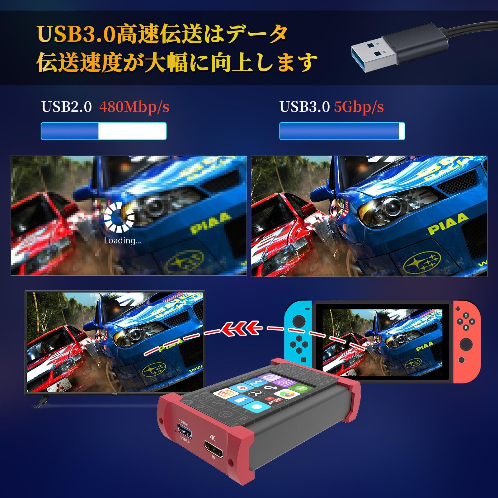 【HDMI 4K30FPSパススルー】 本キャプチャーボードにはキャプチャ専用の高解像度 HDMI 入力インターフェイスとライブ専用の USB3.0 インターフェイスに加え、高解像度 HDMI 出力インターフェイスを装備しています。PS4/PS5やNintendo Switchのゲームををしながらキャプチャーしてゲーム実況・ライブ配信が楽しめます。