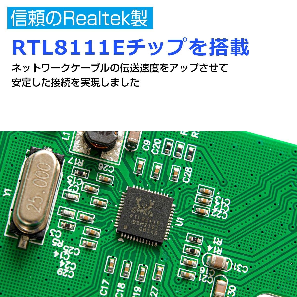 Realtek RTL8111Eチップ搭載。信頼性とコストパフォーマンスに優れたネットワークカードとして、個人・法人問わずおすすめです。
