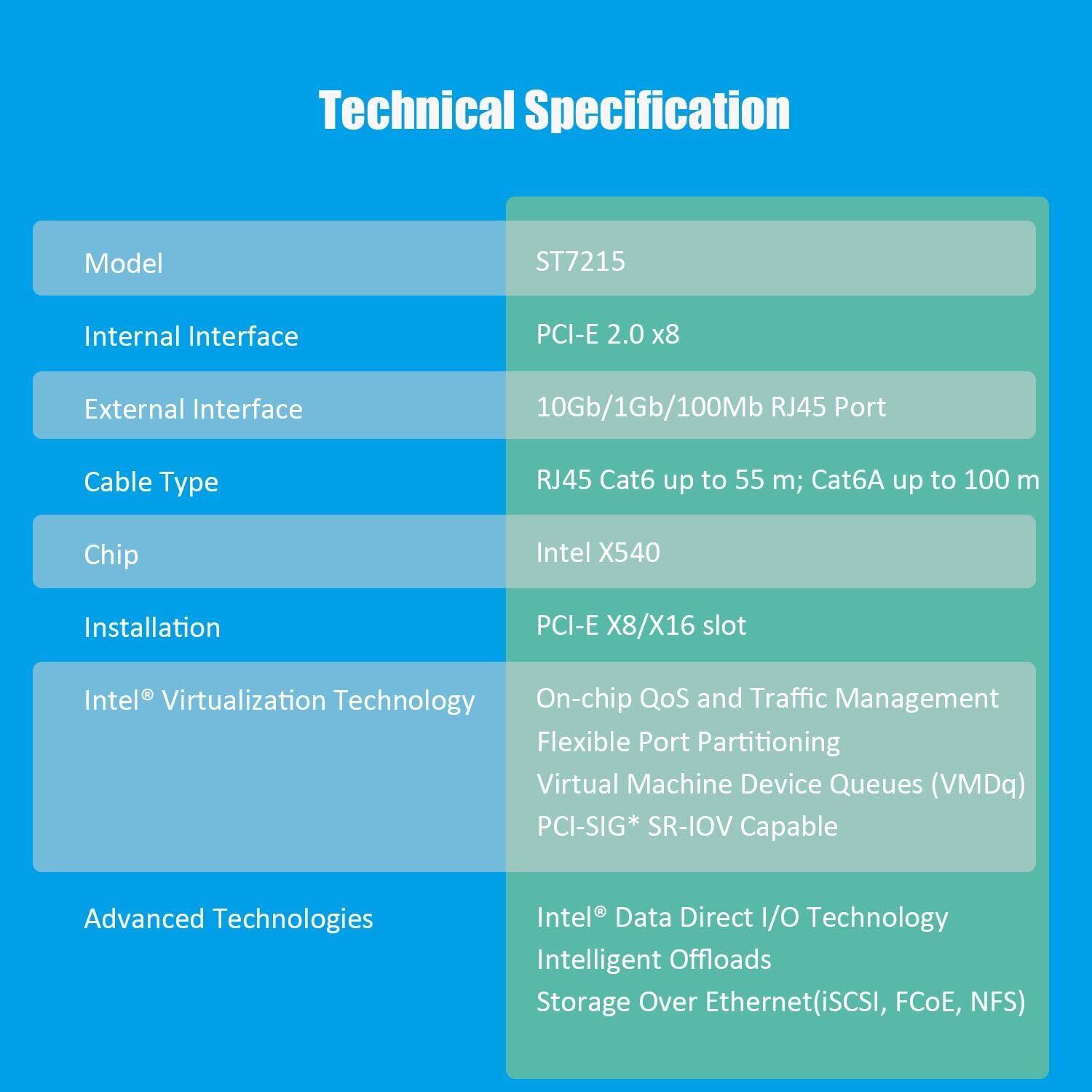 GLOTRENDS ST7215 10Gb RJ45 LAN カード、Intel X540 コントローラ、PCIE 2.1 X8 インターフェース、Mac OS非対応