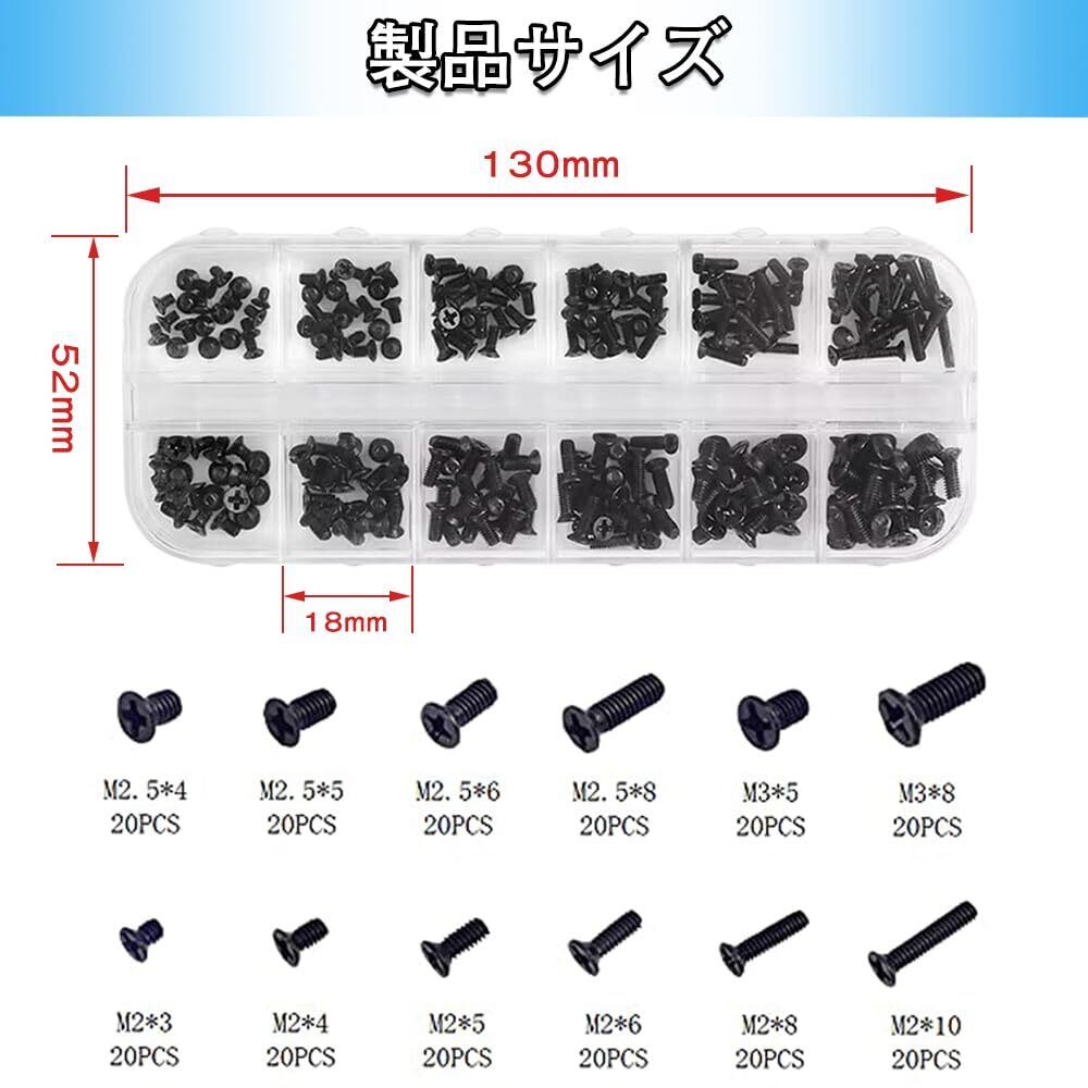 セット内容:ノートPC用ネジは12種類サイズが入ります:M2.5*4、M2.5*5、M2.5*6、M2.5*8、M3*5、M3*8、M2*3、M2*4、M2*5、M2*6、M2*8、M2*10;多様なニーズに対応できます。 ネジ1本あたり20本、合計約240本。