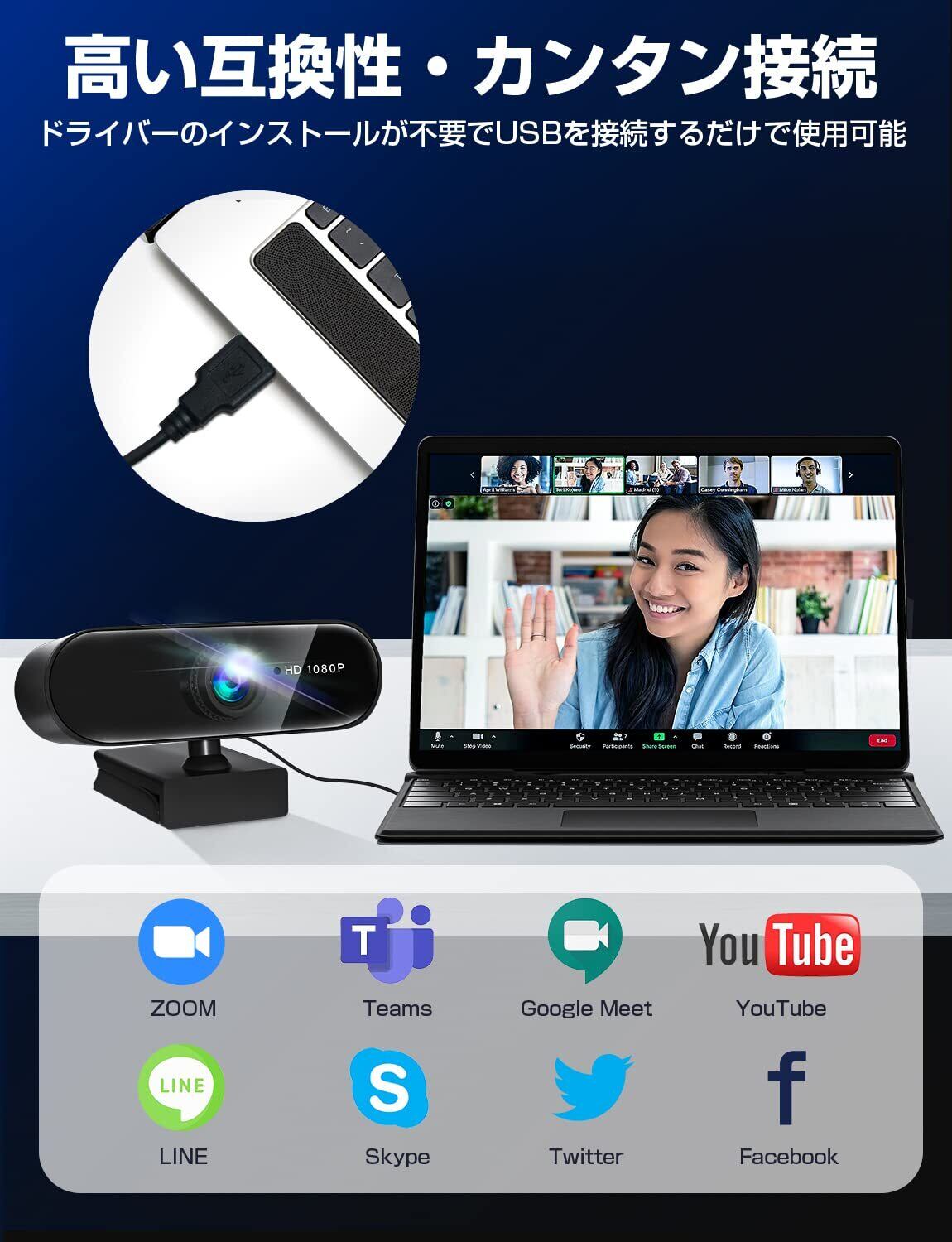 Webカメラ ウェブカメラ フルHD 1080P 【2025年アップグレード版】 高性能 200万画素 マイク内蔵 USB 挿すだけですぐ使える 自動光補正 超広角95° クリップ/スタンド式 三脚対応 外付けwebcam PCカメラ 幅広い互換性 ZOOM/SKYPE/WEB会議/ビデオ通話/テレワーク パソコン Windows Mac Chrome 日本語説明書付き