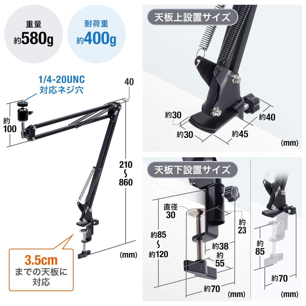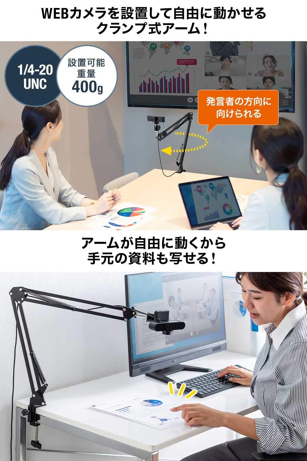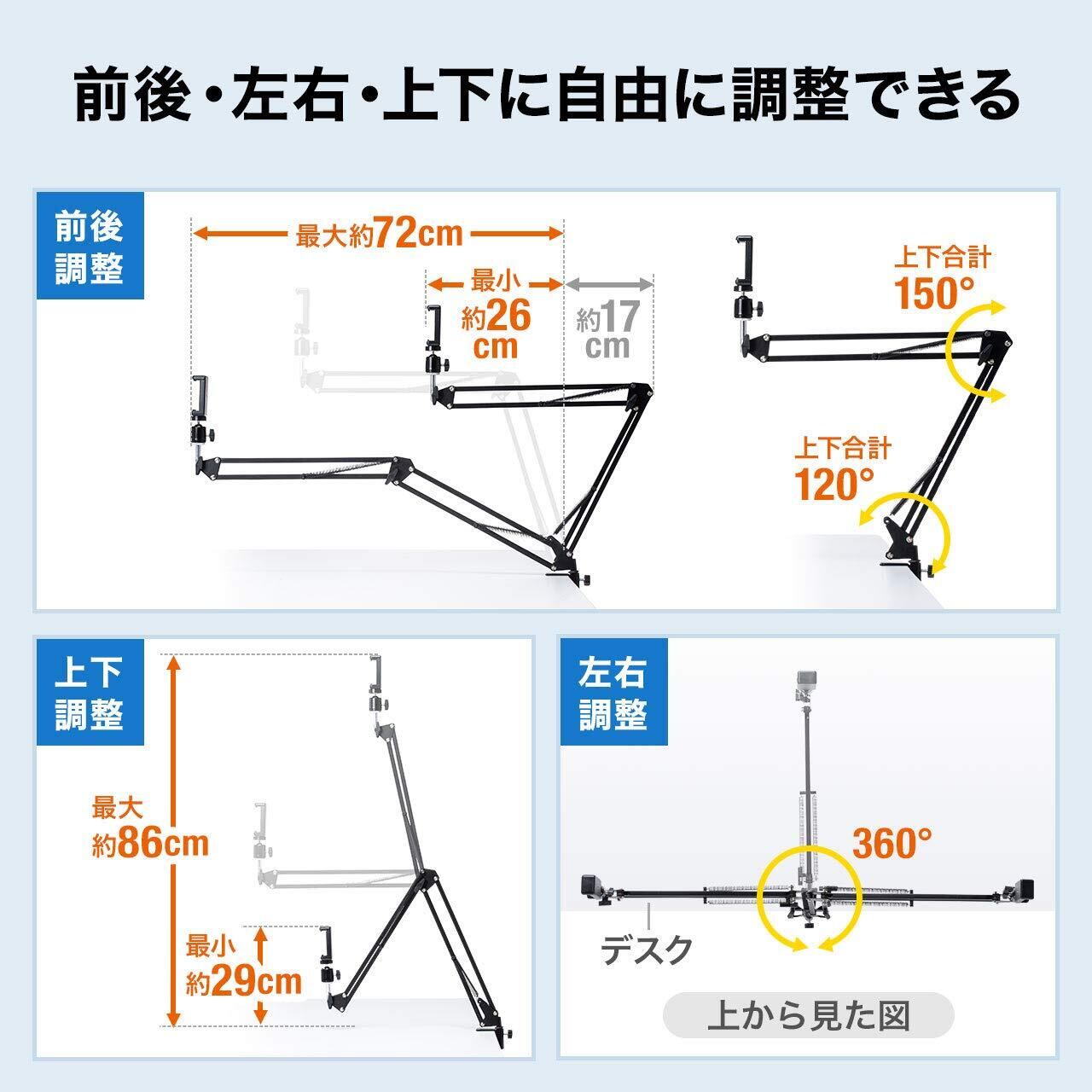 サンワダイレクト WEBカメラ/スマホ用 アームスタンド 角度調整 高さ調整 クランプ式 200-DGCAM021