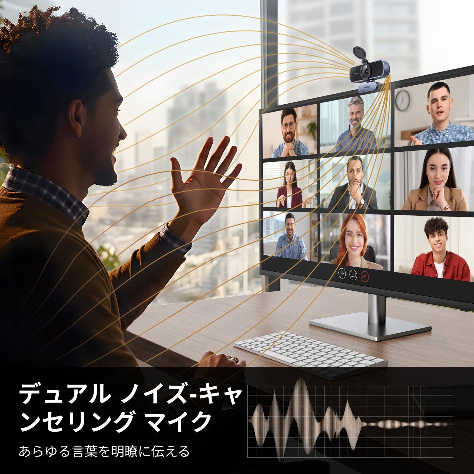 『2つのマイクを内蔵』: UGREENのコンピュータカメラには、5メートル以内の鮮明な音声をキャプチャするデュアルマイクが内蔵されています。4Kウェブカメラは、ビデオ通話中にあなたの声がはっきりと聞こえ、会議室やグループストリーミングに最適なコミュニケーションの有効性を高めます。