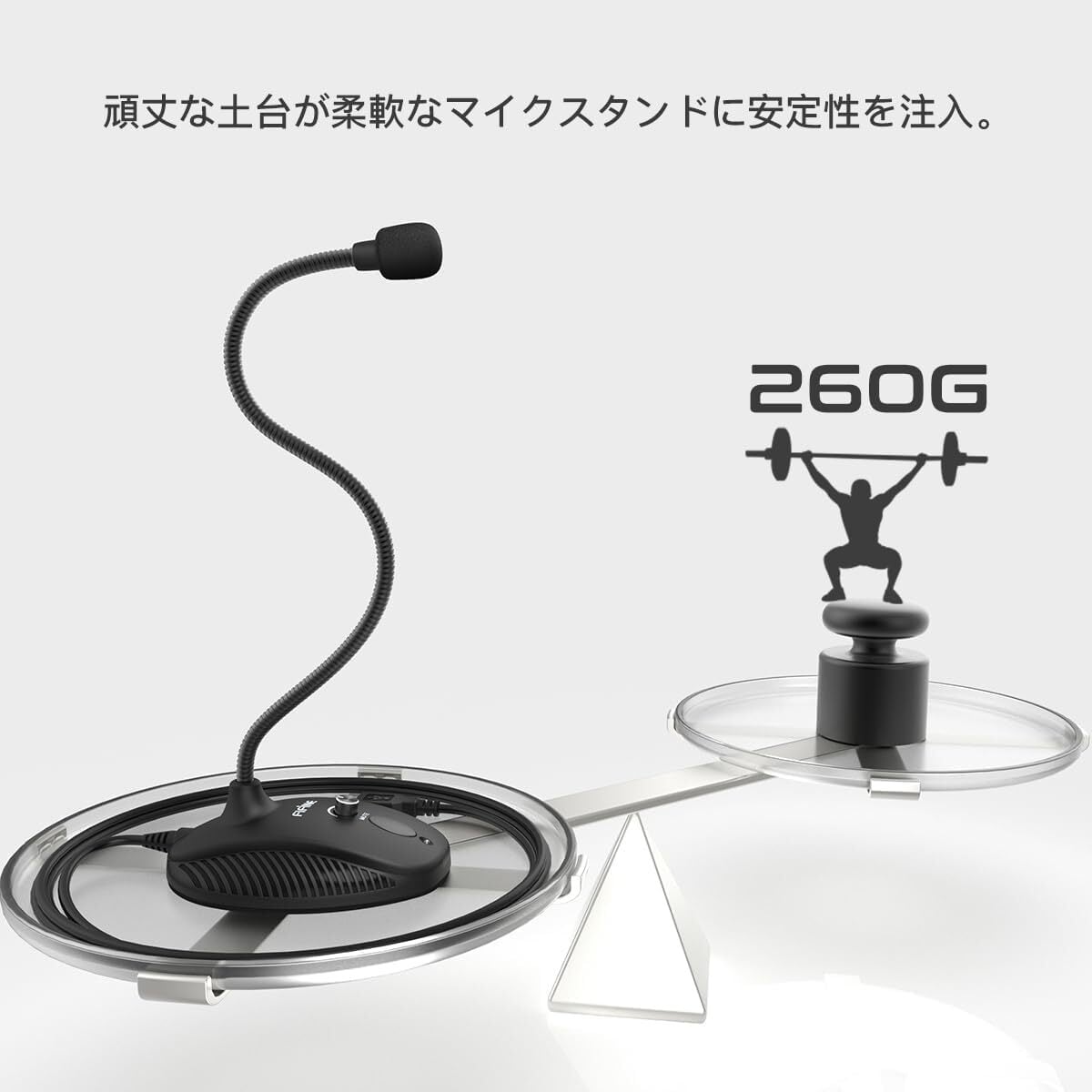 【優れた安定性】マイクの台座の底面には膠質の滑り止めが付いており、不意な力による移動を防ぎます。更に重さは約259gになり、重量感がたっぷり!ブラック色と運び中滑り止めのデザインを合わせて、とても丈夫かつ耐久性が高いです。