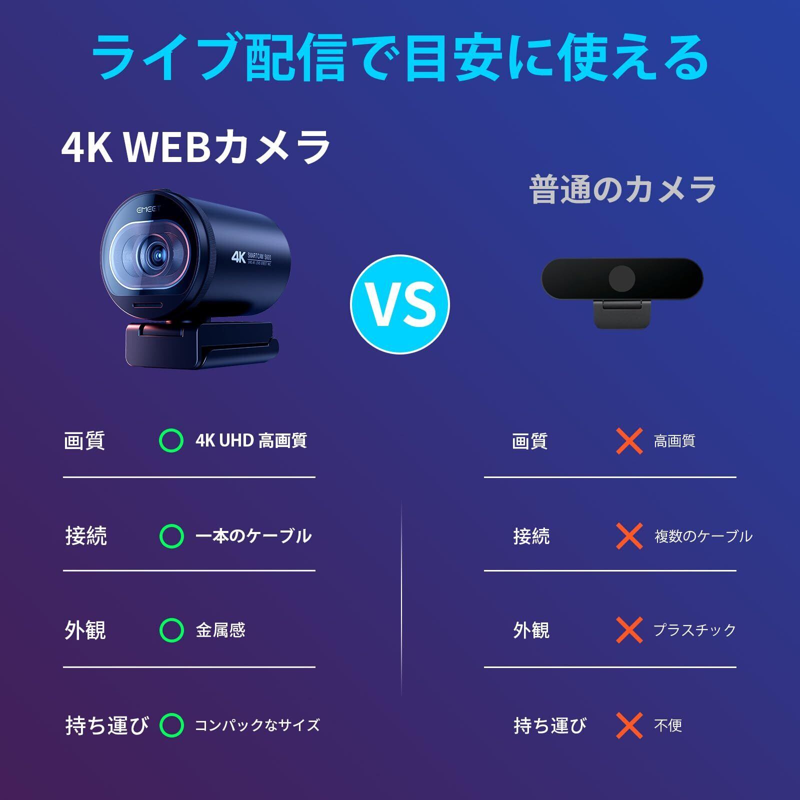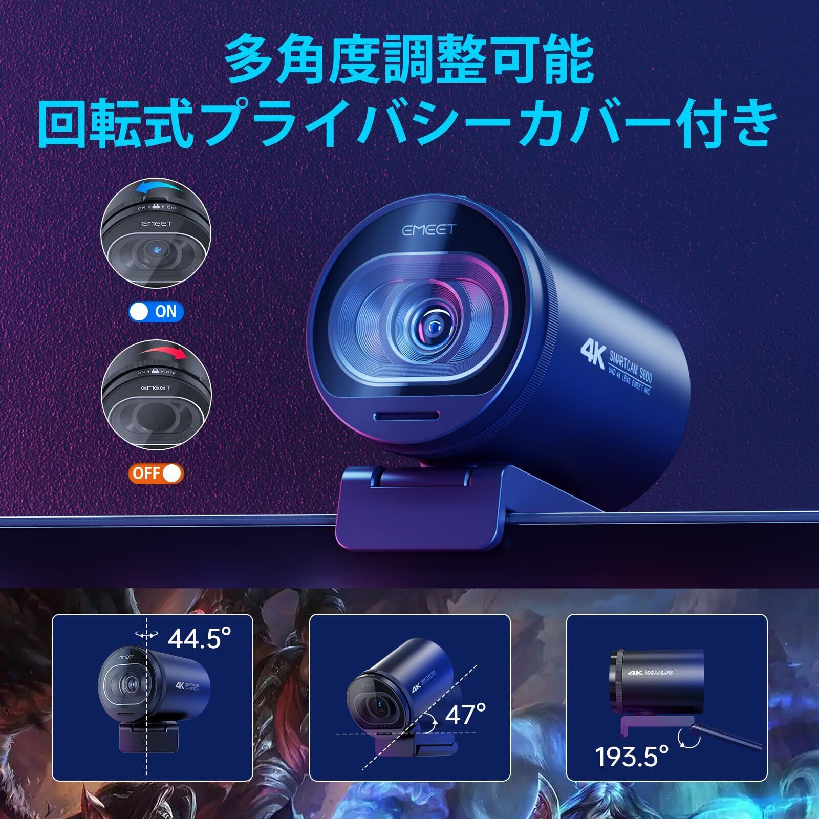 ウェブカメラ4K UHD EMEET S600 WEBカメラ 800万画素 1080p 60fps 高性能センサー搭載 73°視野角 PDAFオートフォーカス 二つノイズキャンセリングマイク内蔵 自動光補正 生放送 ライブ配信 ゲーム実況 ビデオ会議用 Youtube, Skype, Facebook, zoom, Facetimeなど対応