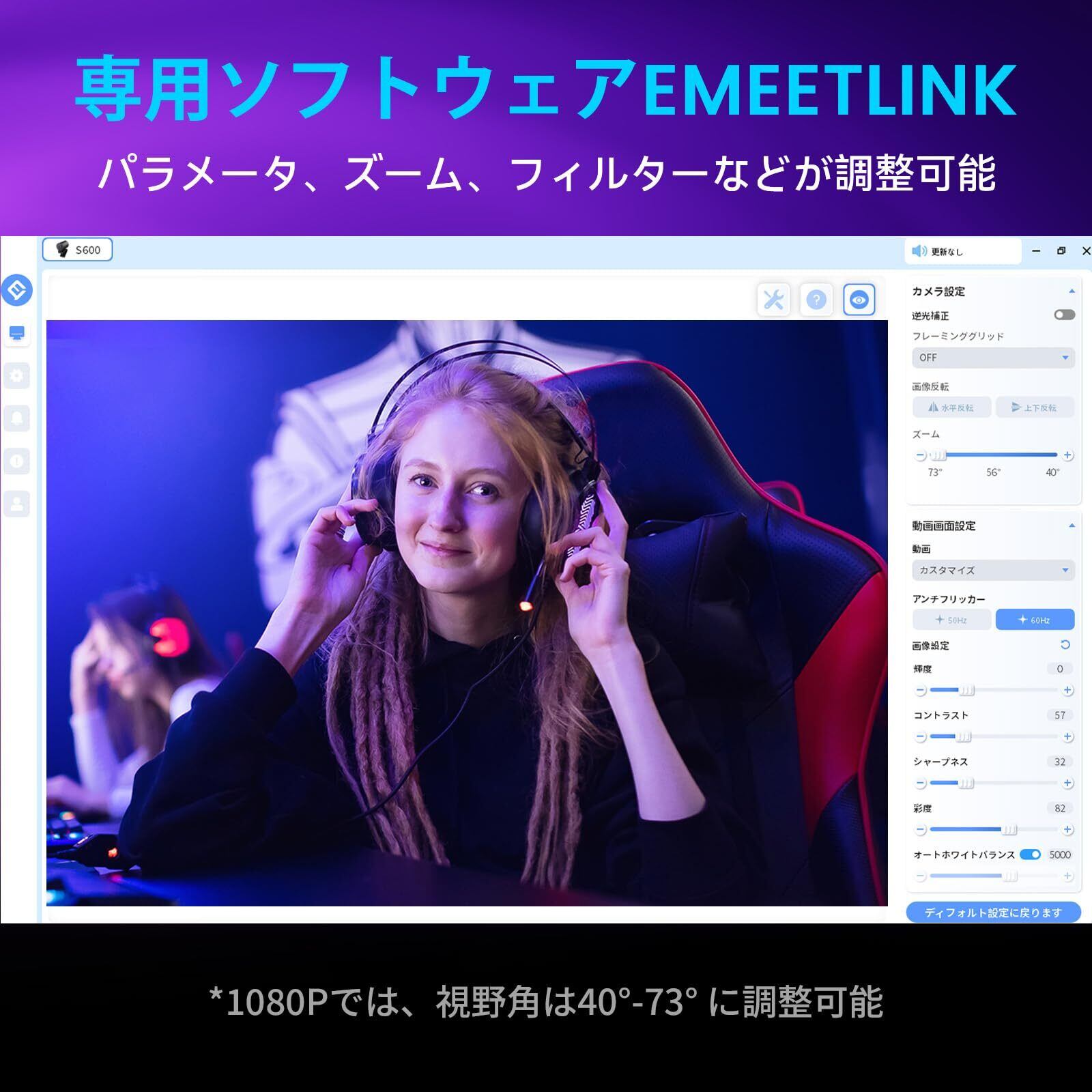 【設定簡単、パラメータ自由調整】EMEET USB ウェブカメラはドライバー不要、USBケーブルで差し込むだけですぐに使えます。ワーク一部として簡単に統合で、「ライブ配信」「動画撮影」「ウェブ会議」などのシーンに活躍します。また、EMEET製品専用のEMEETLINKソフトウェアを無料でダウンロードして、輝度、コントラスト、シャープネス、頻度など調整だけではなく、ファームウェアのアップデート設定などより細かな設定も可能です。