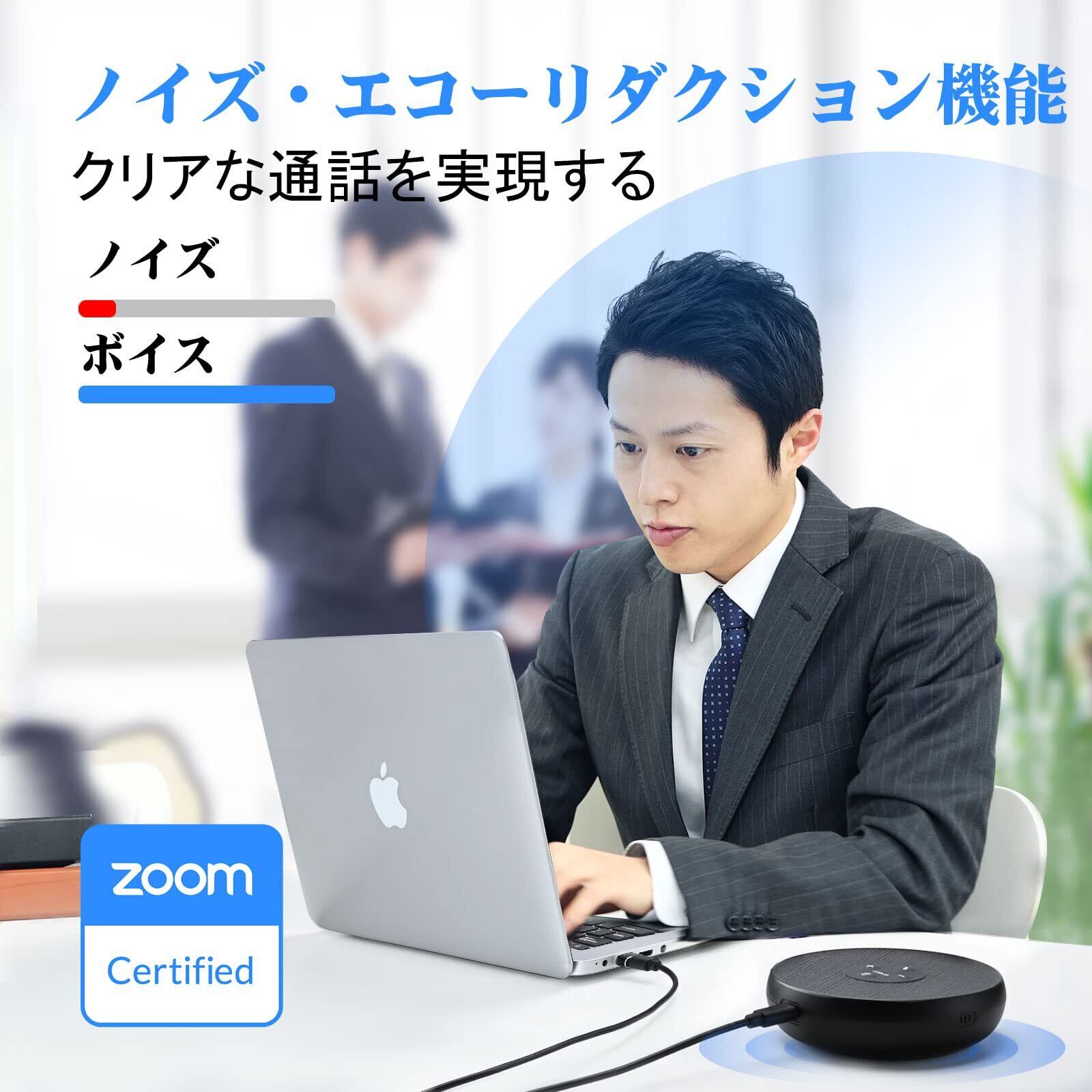 【優れた音声処理機能】エコーキャンセリングや残響抑制、ノイズリダクション機能を採用しており、クリアな通話を実現できたスピーカーフォンです。周囲の雑談の音、コピー機・エアコンのノイズ、キーボード打ちの音などを抑制でき、発言者の音を明瞭に展開できます。ストレスのないオンライン会議をサポートします。高品質な通話をする「Zoomミーティング」の公式認証を取得し、製品本体のミュートボタンとZoom上のミュート表示が連動するようになります。