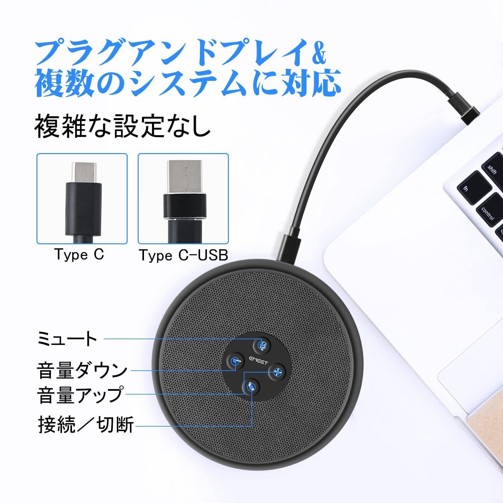 EMEET スピーカーフォン Zoom認証 360˚全方向集音 会議用マイクスピーカー 双方向通話 ノイズキャンセリング 全指向性集音マイク 4人会議対応 Skype/Zoom/Facetime/Wechat通話アプリ対応 USB C/USB A接続 オンライン会議/ウェブ会議/ビデオ会議/在宅勤務/テレワーク/オンライン教育用 M1A ブラック
