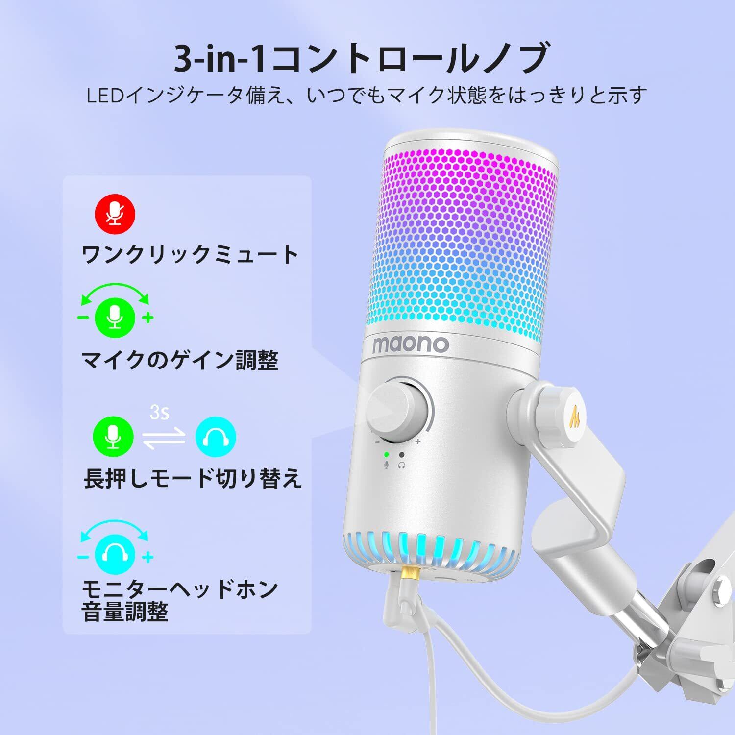 MAONO USB コンデンサーマイク ゲーミングマイク PC マイク 専用ソフトウェア RGBライティング ヘッドホン出力端子あり 単一指向性 プラグ&プレイ YouTube Skype ゲーム実況 ライブ配信 在宅勤務 Windows/Mac/PS4/PS5対応(DM30 RGB)