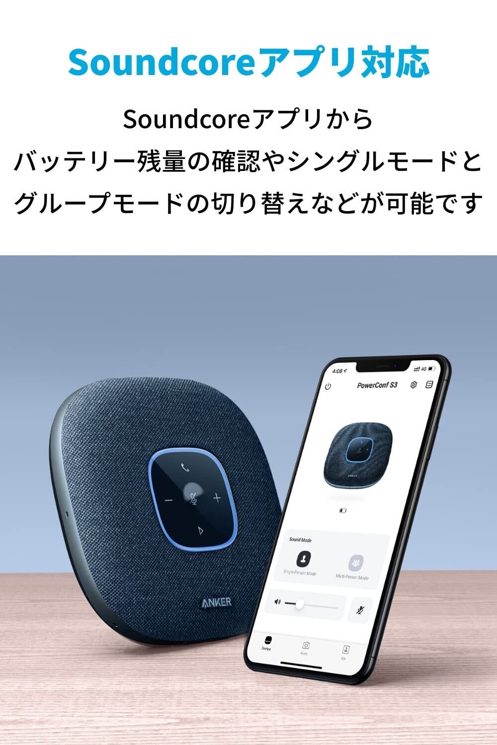 Anker PowerConf S3 スピーカーフォン 会議用 マイク Bluetooth 対応 24時間連続使用 グループモード対応 USB-C接続 オンライン会議 テレワーク 在宅 会議用システム ウェブ会議 テレビ会議 ビデオ会議(ネイビー:ファブリック)