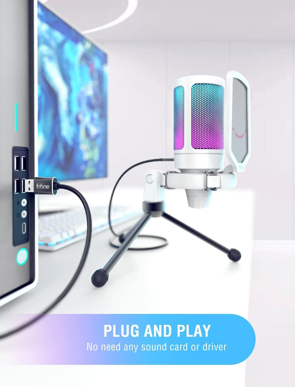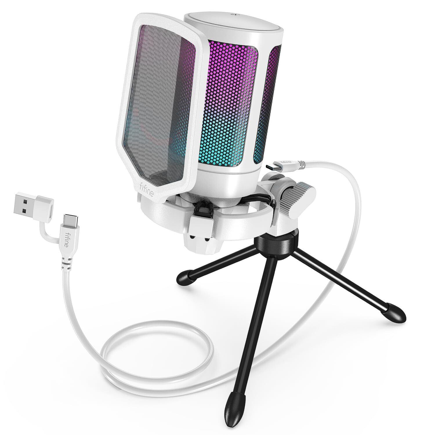 FIFINE USB コンデンサーマイク RGBライティング カーディオイド指向性 プラグ&プレイ パソコン/プレステマイク USB-C→Aケーブル付き ワンタッチミュート YouTube Skype Discord Zoom 録音 ゲーム実況 ボイズチャット ライブ配信 テレワーク web会議に最適 PCのWindows MacOS PS4/PS5対応 白 AmpliGame A6VW