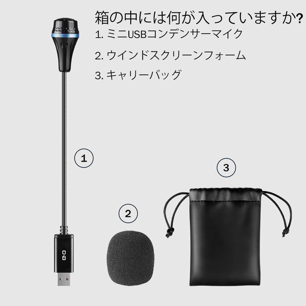 ミニUSBコンデンサーマイク(PC/Mac対応) グースネック&USBサウンドカード内蔵 リモートワーク・オンライン授業に最適 プラグアンドプレイ