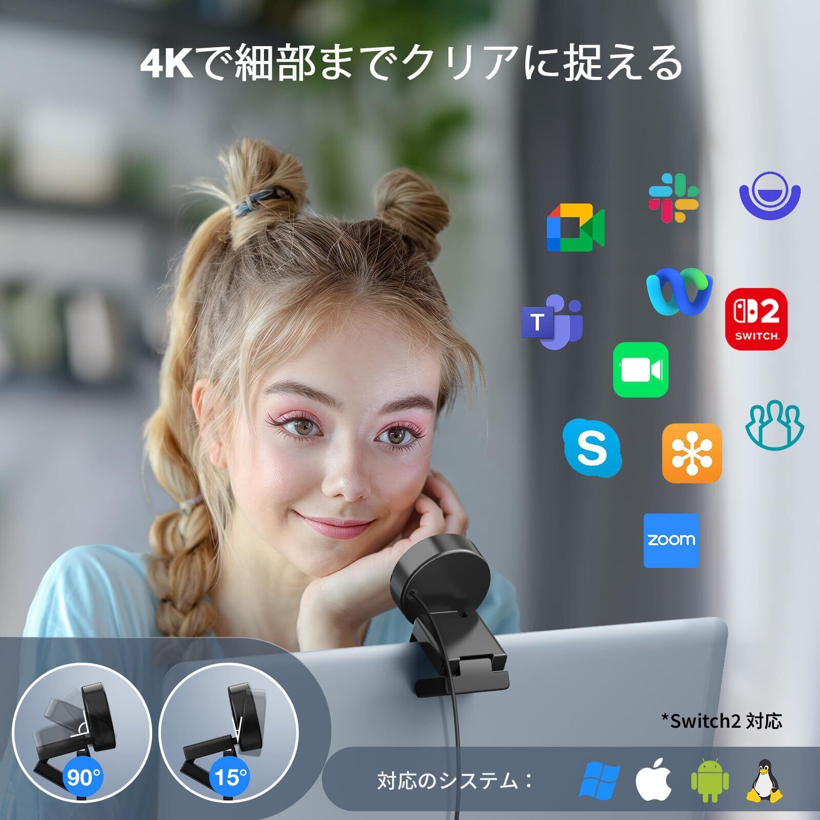 【プラグ&プレイ、幅広い互換性】この小型4K webカメラはドライバーや複雑な設定が一切不要で、USBケーブルを接続するだけですぐに使用できます。Zoom、Skype、Microsoft Teams、Google Meet、Line、YouTube Live、Twitch、ニコニコ生放送、ABEMA、Google Hangoutなどと互換性があり、安定した高品質な通話を提供します。Windows(Win7、10、11)およびmacOS(10.10以降)に対応し、USBビデオデバイスクラス(UVC)モードでシームレスに動作します。