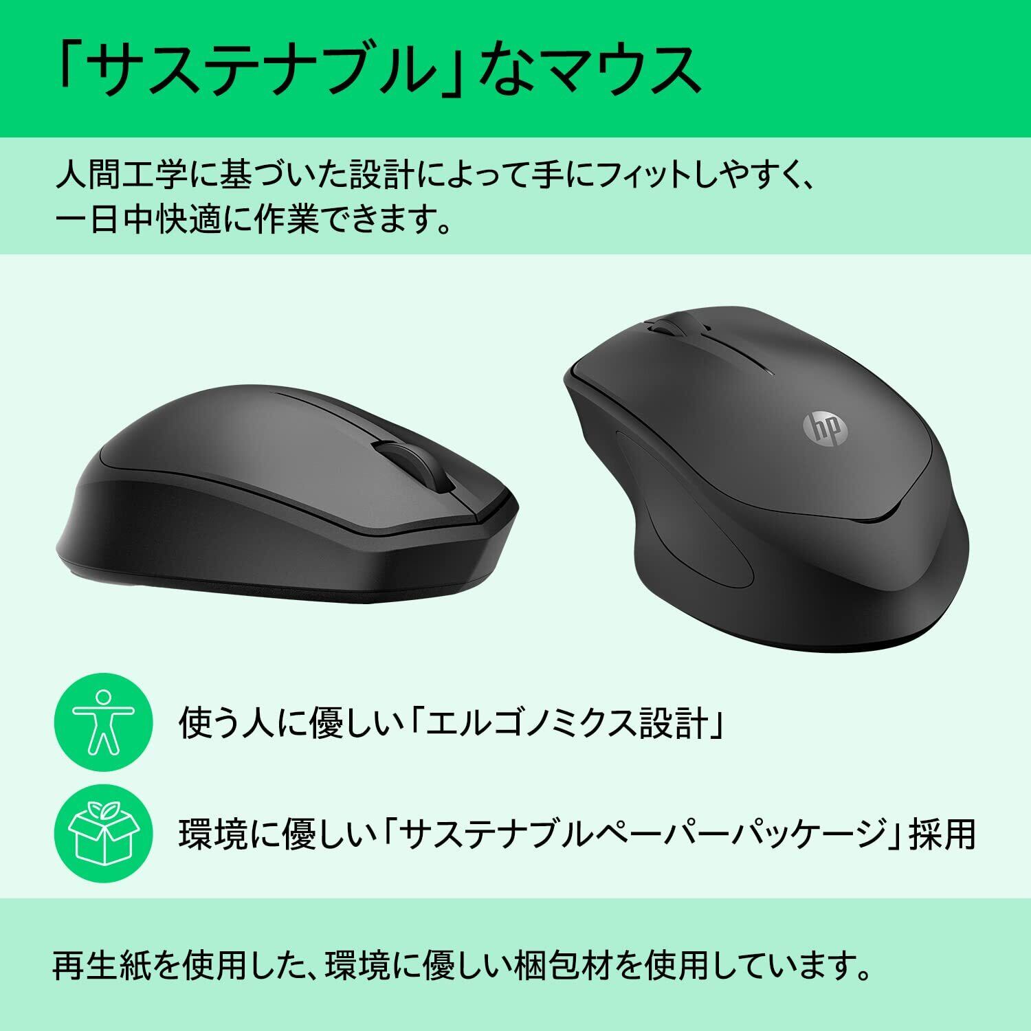 HP マウス 静音クリック BlueLED 無線 ワイヤレス HP 280 ワイヤレスマウス 電池寿命最大18カ月 エルゴノミクス ブラック(型番:19U64AA#UUF) Mac Windows PC MacBook対応【国内正規品】