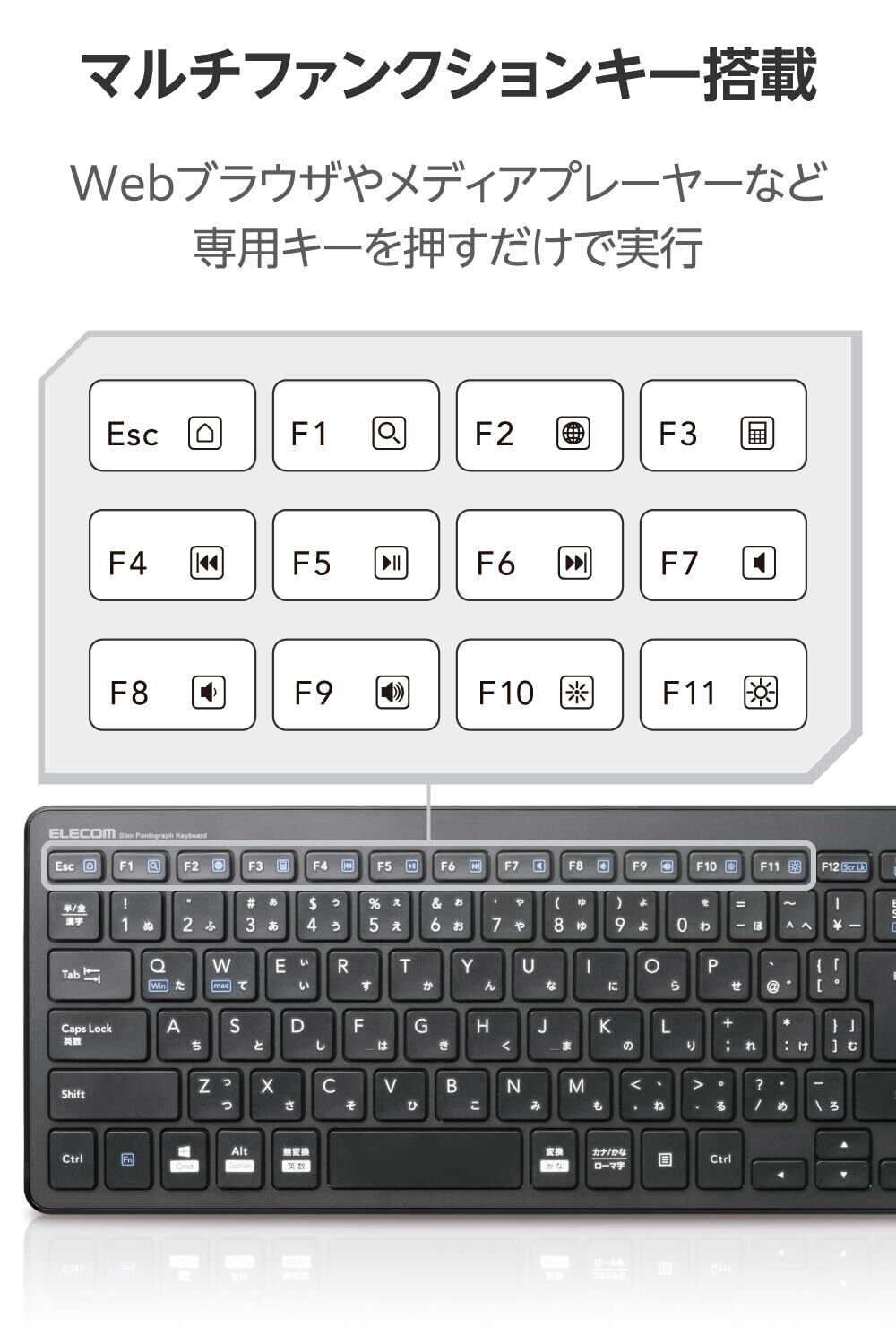 ■Webブラウザやメディアプレーヤーの機能などを専用キーを押すだけで実行できる12種類のマルチファンクションキーを搭載しています。
