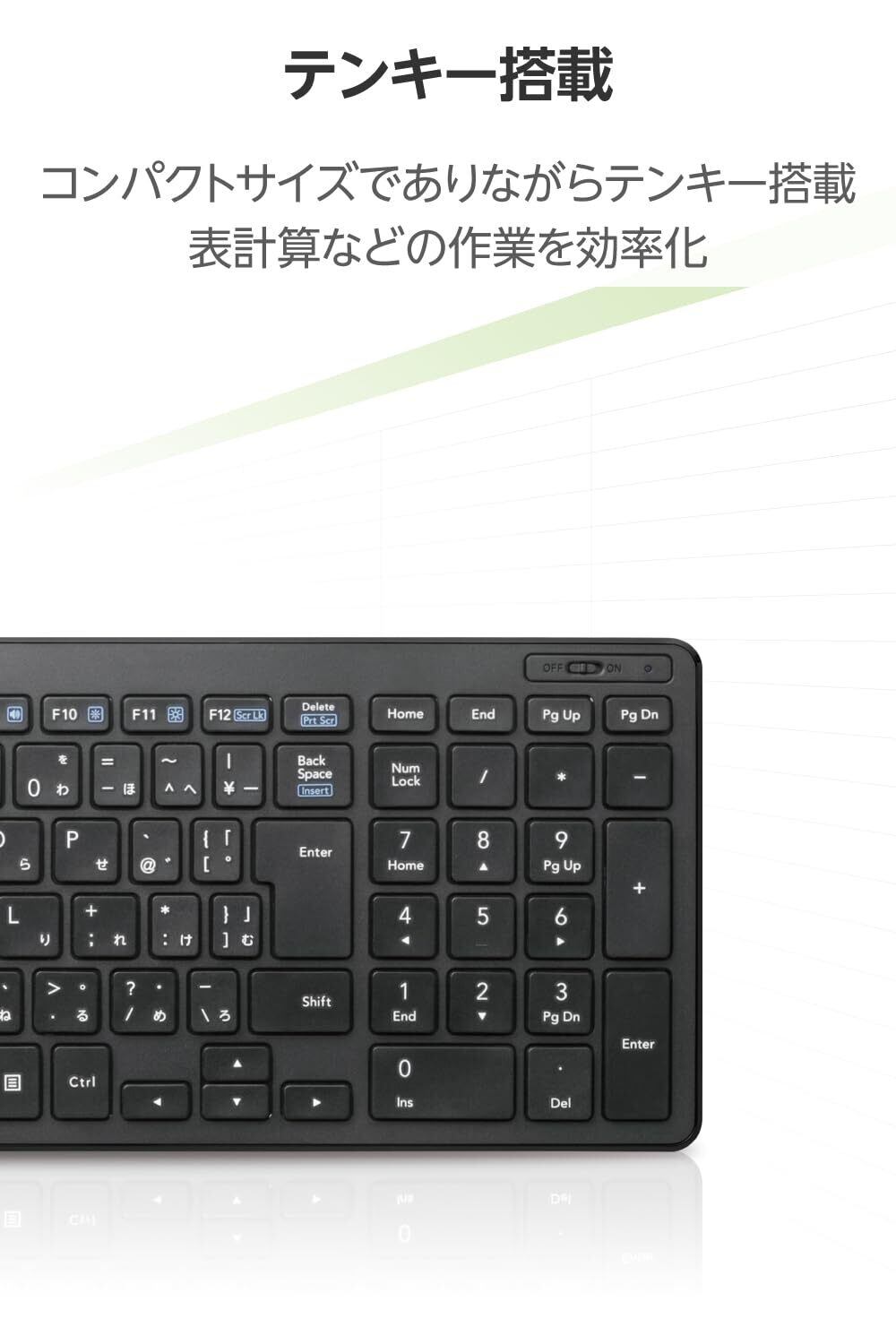エレコム ワイヤレスキーボード コンパクト テンキー付 パンタグラフ式 薄型 ブラック TK-FDP099TBK/EC