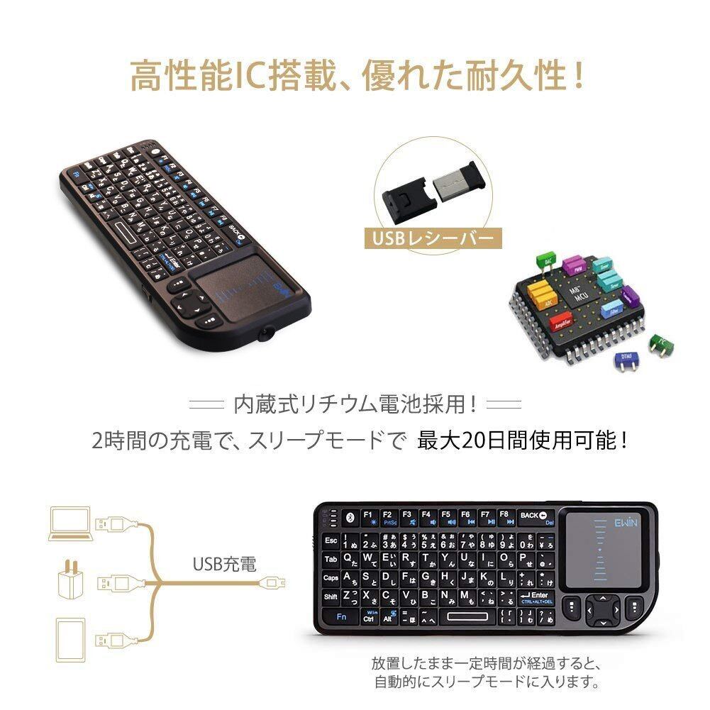 Ewin® ミニ キーボード bluetooth 日本語JIS配列 ワイヤレス式 2.4GHz タッチパッド搭載 バックライト付き 応急LEDライト付き マウスセット一体型 Bluetoothドングル付属 多機能ボタン 無線 USBレシーバー付き Mini Bluetooth keyboard 超小型 TV Box、PC、 fire TV等対応【日本語説明書付き】