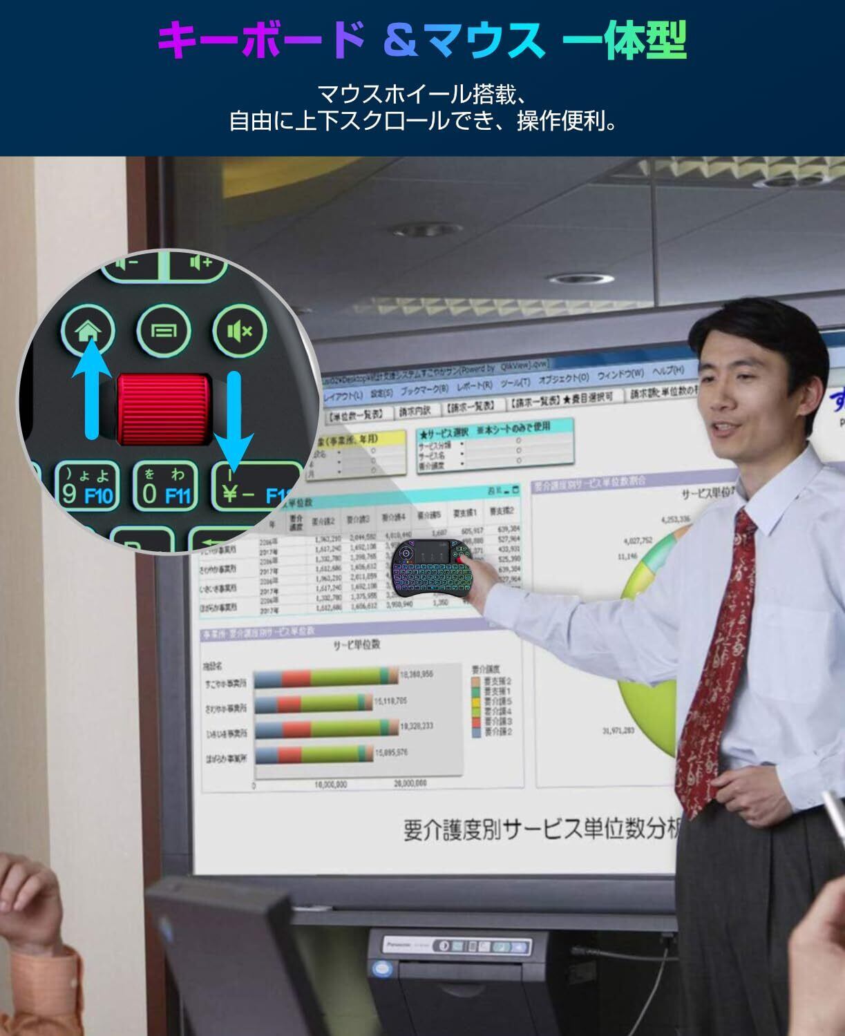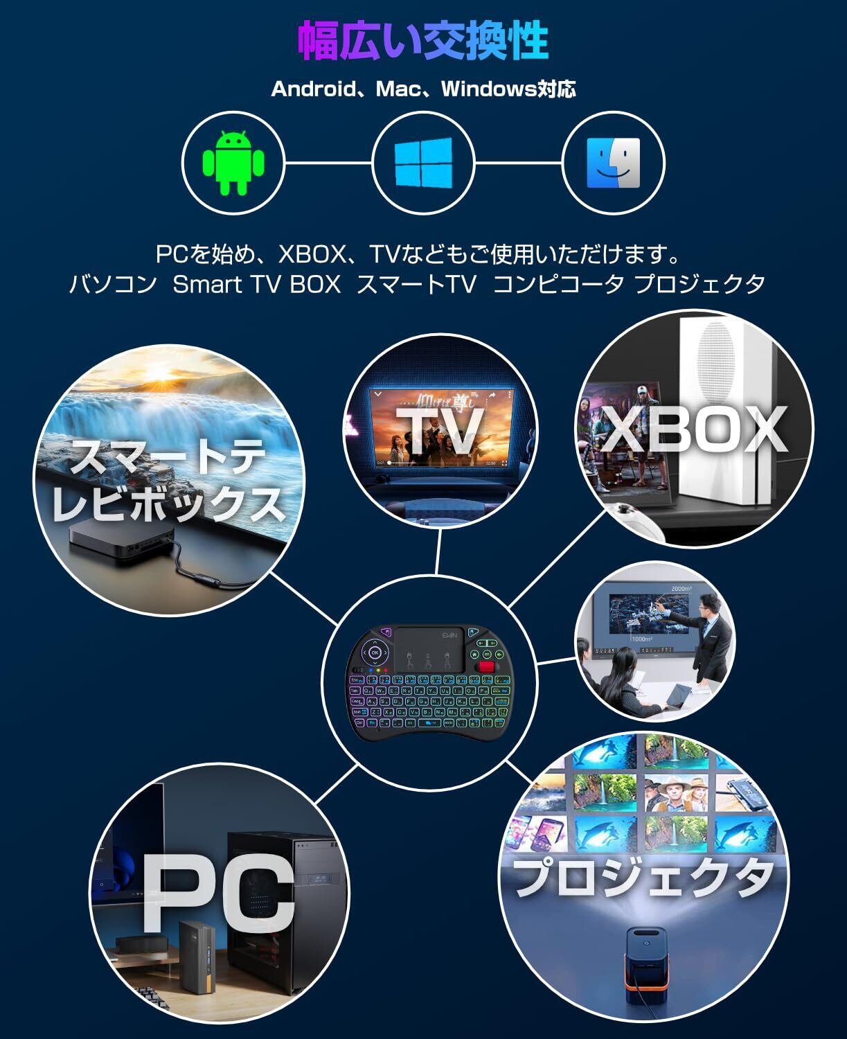 Ewin ミニキーボード ワイヤレス 2.4GHz タッチパッド&マウスホイール搭載 日本語配列 8色バックライト マウス一体型 USBレシーバー付き 超小型 ポータブル Mini Keyboard TV/PC対応