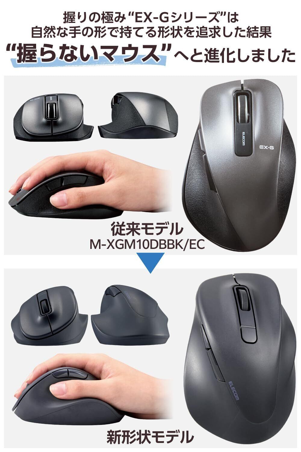 医師との共同開発により究極の握り心地を実現した5ボタンマウス“EX-G"。