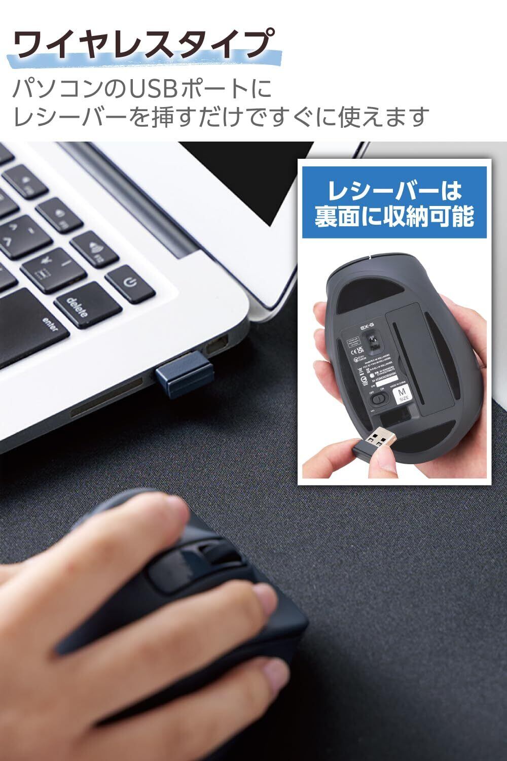 エレコム マウス ワイヤレスマウス EX-G 無線2.4GHz 静音 Lサイズ 5ボタン 「AskDoctors評価サービス」認証 抗菌 ブラック M-XGL30DBSKABK
