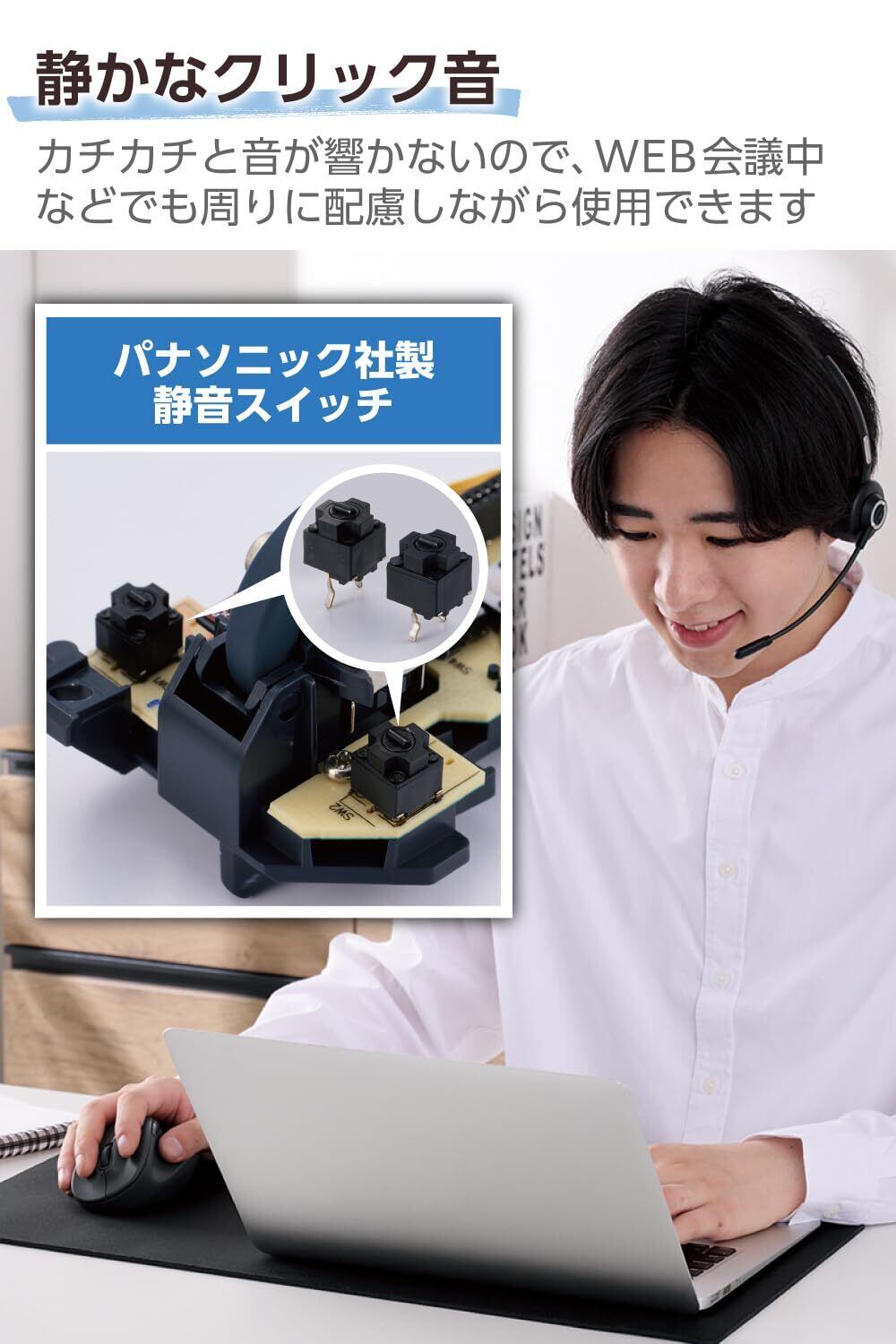 ■気になるクリックのカチカチ音が響かないため、会議中のパソコン操作や在宅勤務時の早朝・夜間の作業などでも気にせず使用できます。