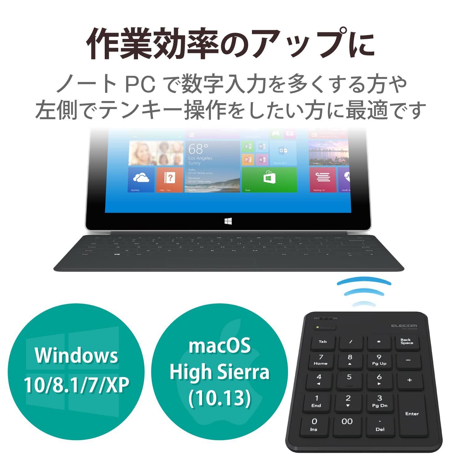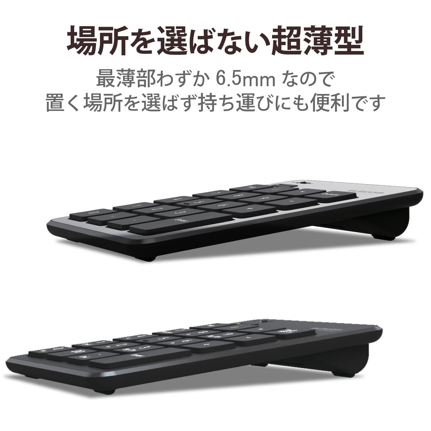 最薄部がわずか6.5mmの薄型設計で、場所を選ばずに使用できるBluetooth(R)薄型テンキーパッドです。