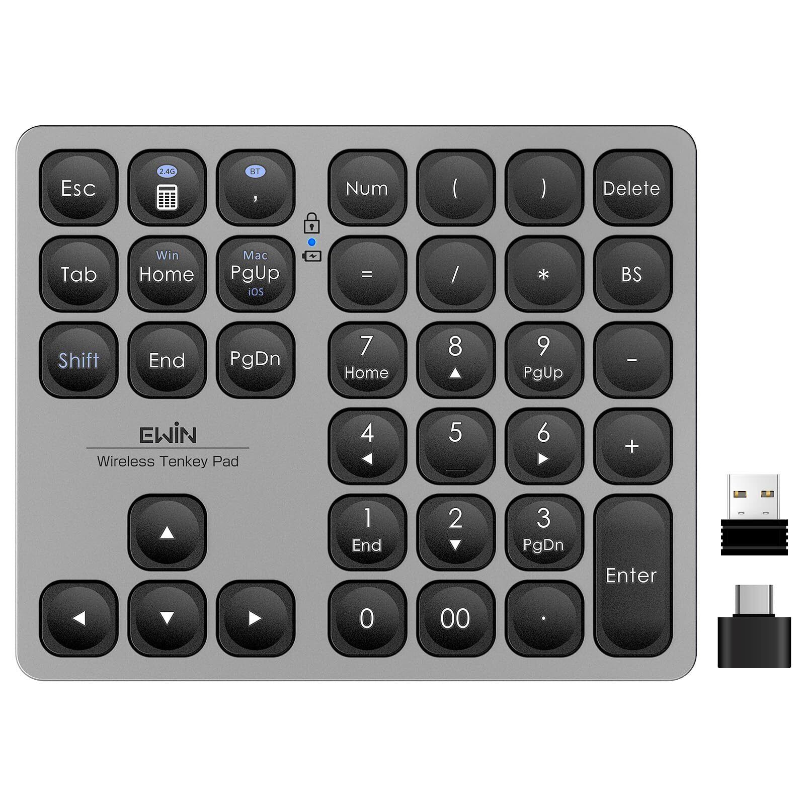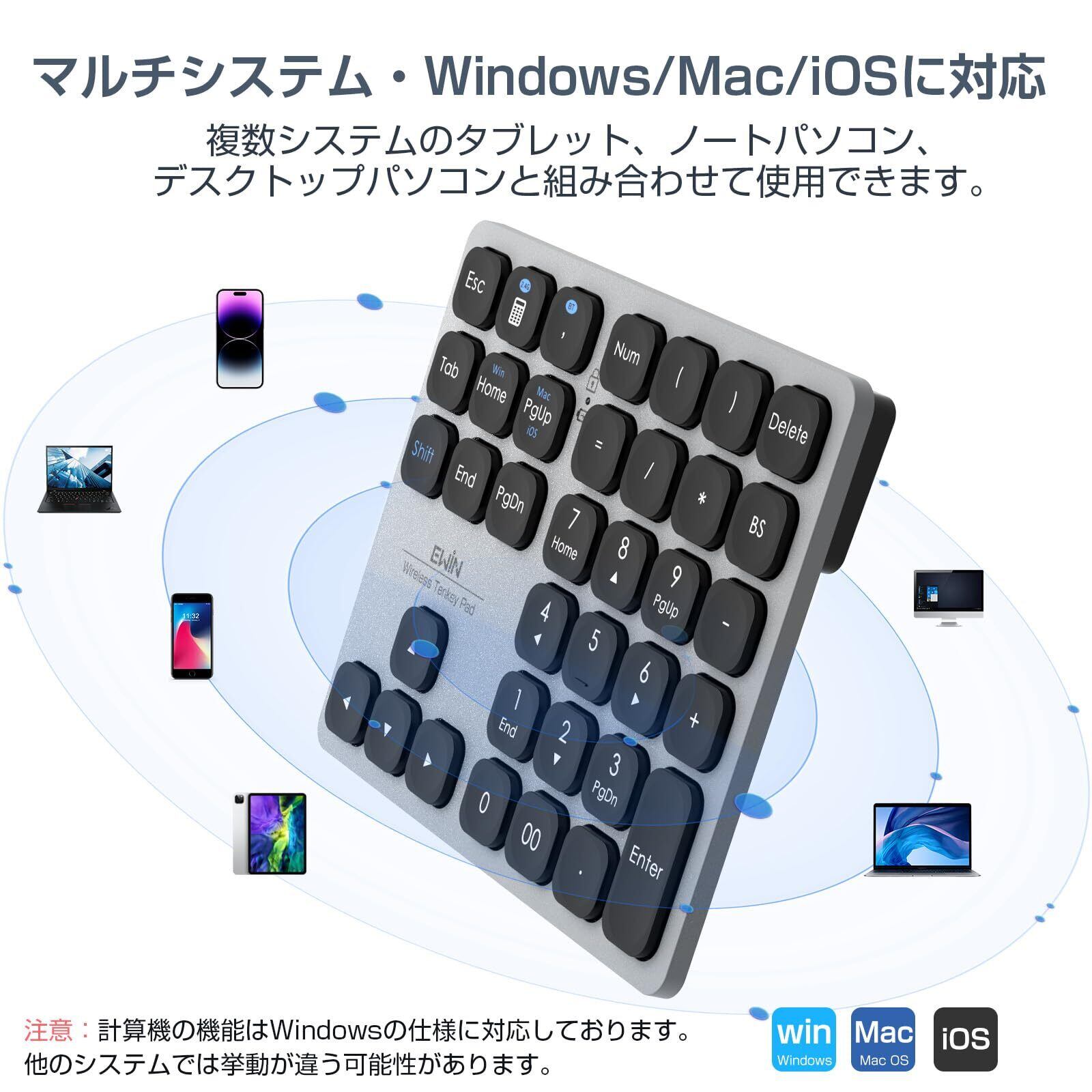 Ewin テンキー Bluetooth5.2 / 2.4G接続 2台接続 Mac対応テンキー ワイヤレス 数字キーボード Bluetoothキーボード 超薄軽量 numlock連動 Type-C充電 37キー 日本語対応 iOS iPadOS Mac Windows Androidに対応