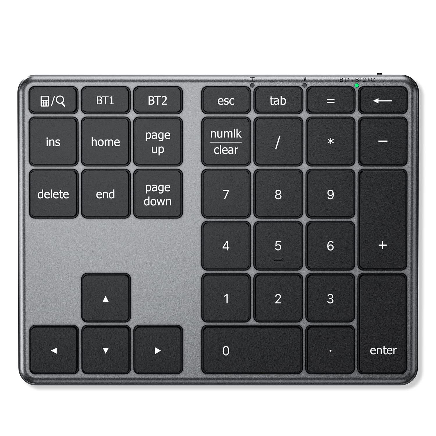 【34のキーを搭載したテンキー】pgup、pgdn、home、end、電卓、検索、その他の機能を含み、作業効率を向上させます。Bluetooth 5.1は、安定した接続と優れた互換性を備えており、事務作業やデザインなど多目的に使用することができます。 ※左上の電卓アイコンのキーは、接続先デバイスのOSにより機能が異なります。Mac,iOSの場合:検索 / Windowsの場合:電卓 / Android,その他のシステムの場合:機能しません。