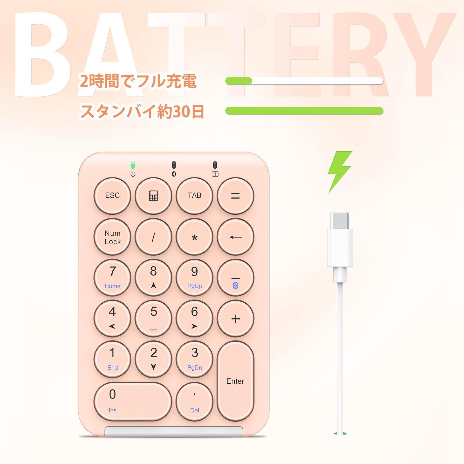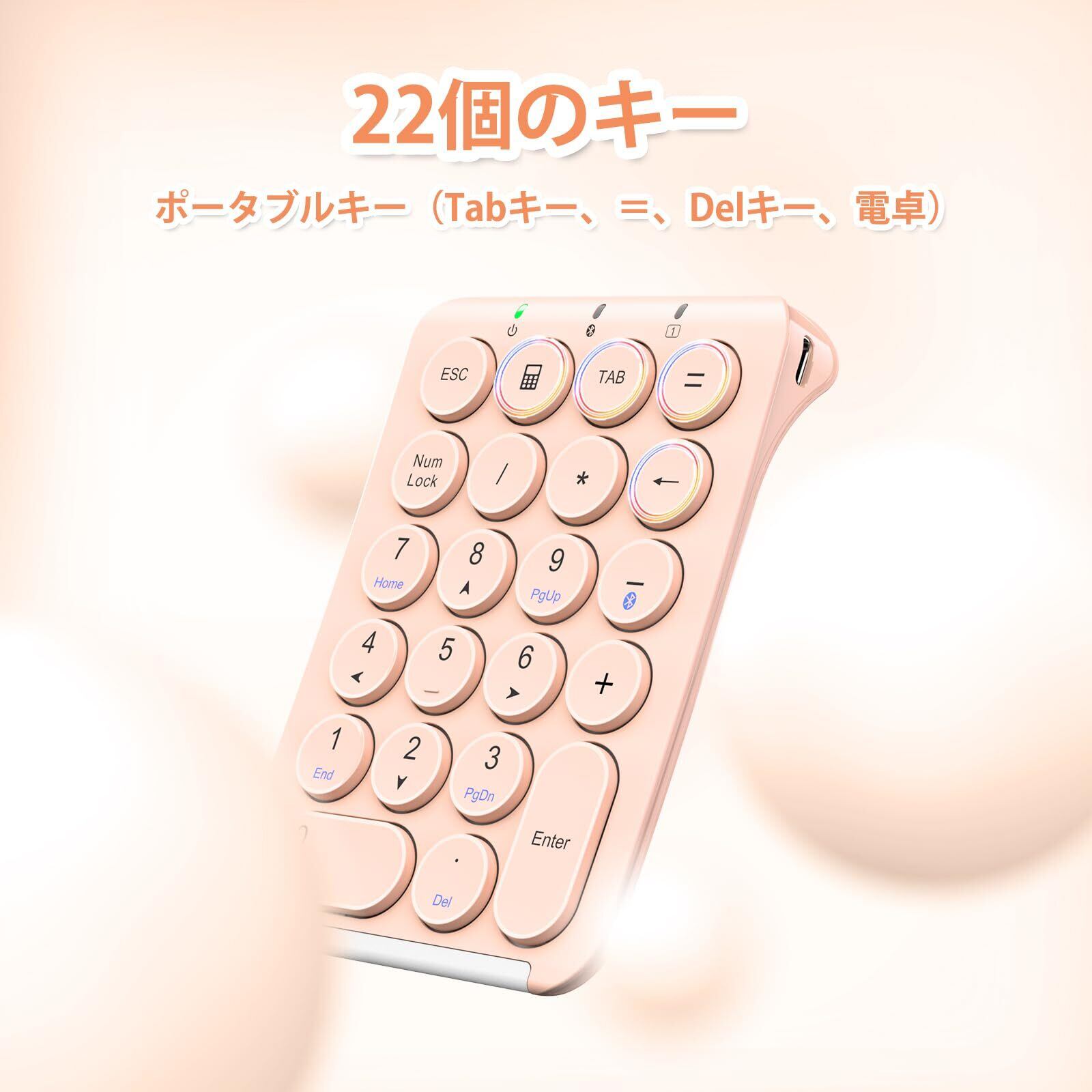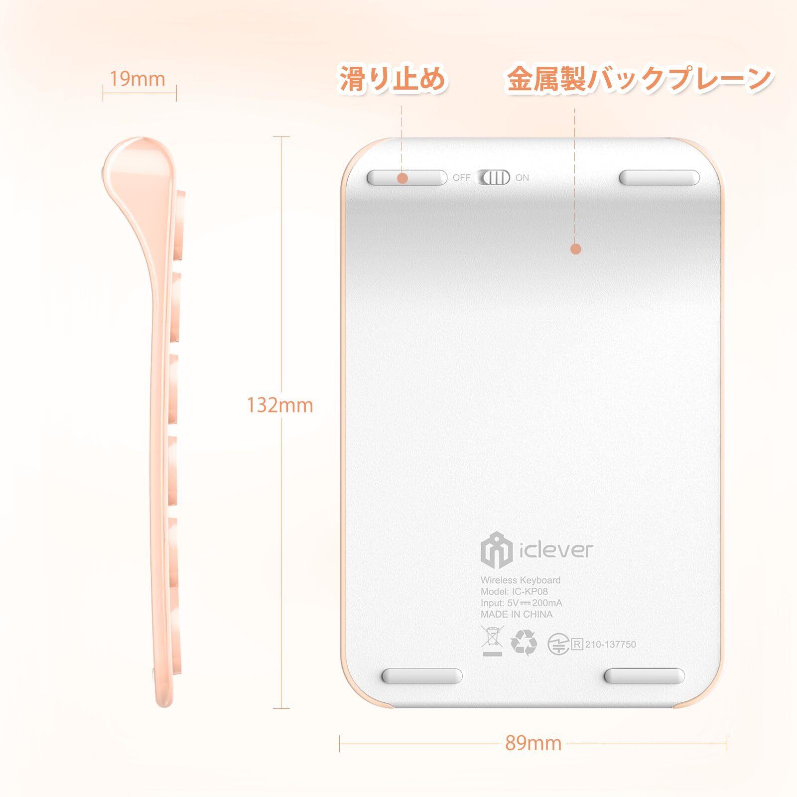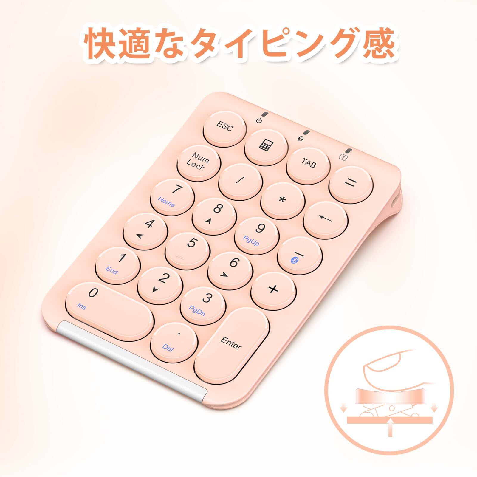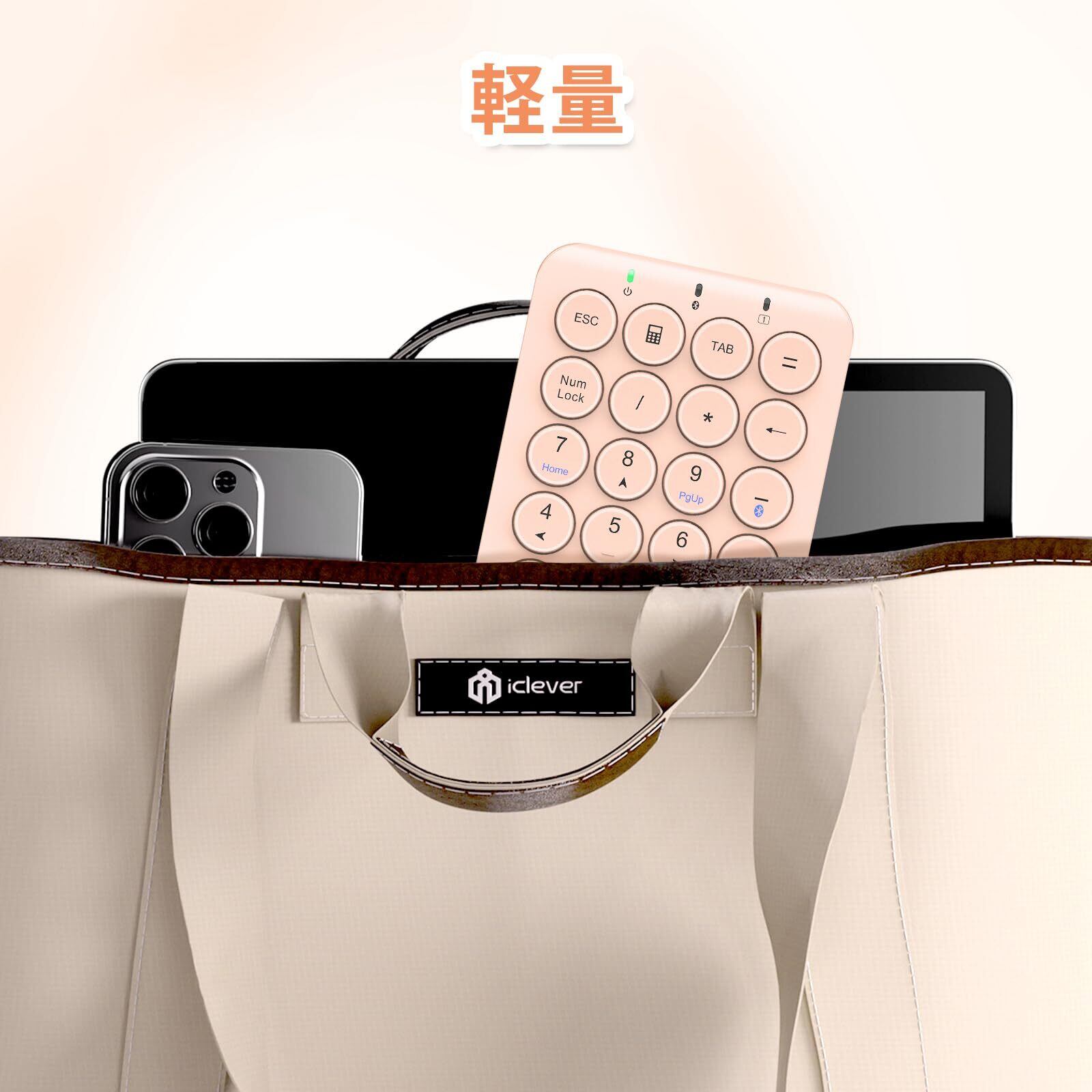 iClever テンキー Bluetooth ワイヤレス 数字 キーボード パンタグラフ式 Type-c充電 超薄型 Tabキー付き ブルートゥース テンキー 無線 ナンバーパッド 左手デバイス 片手デバイス ショートカットキー 高耐久 PC ノートブック用 Windows/iOS/Android など対応 IC-KP08 ピンク
