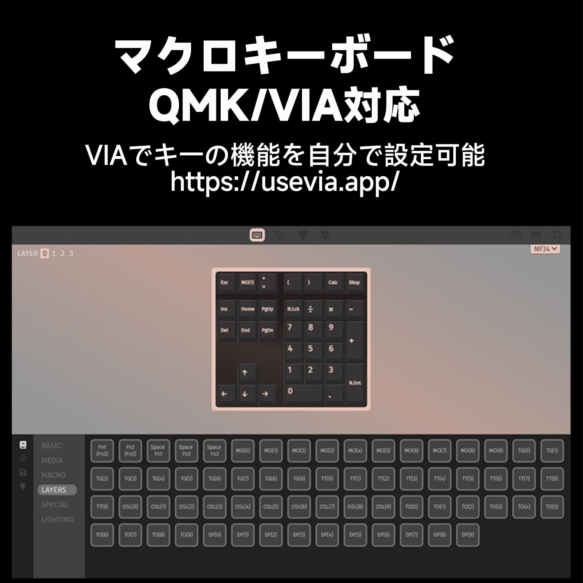 【ホットスワップ対応&VIAでキーマップを変更可能】テンキーはホットスワップ対応しており、お客様がご自身でキーキャップとスイッチを交換できます。3ピンキースイッチと5ピンキースイッチと互換性があります。また、これもマクロキーボードで、ソフトウェアとVIAでキーの機能をカスタマイズ可能です。【VIAでキーマップを変更】https://usevia.app/