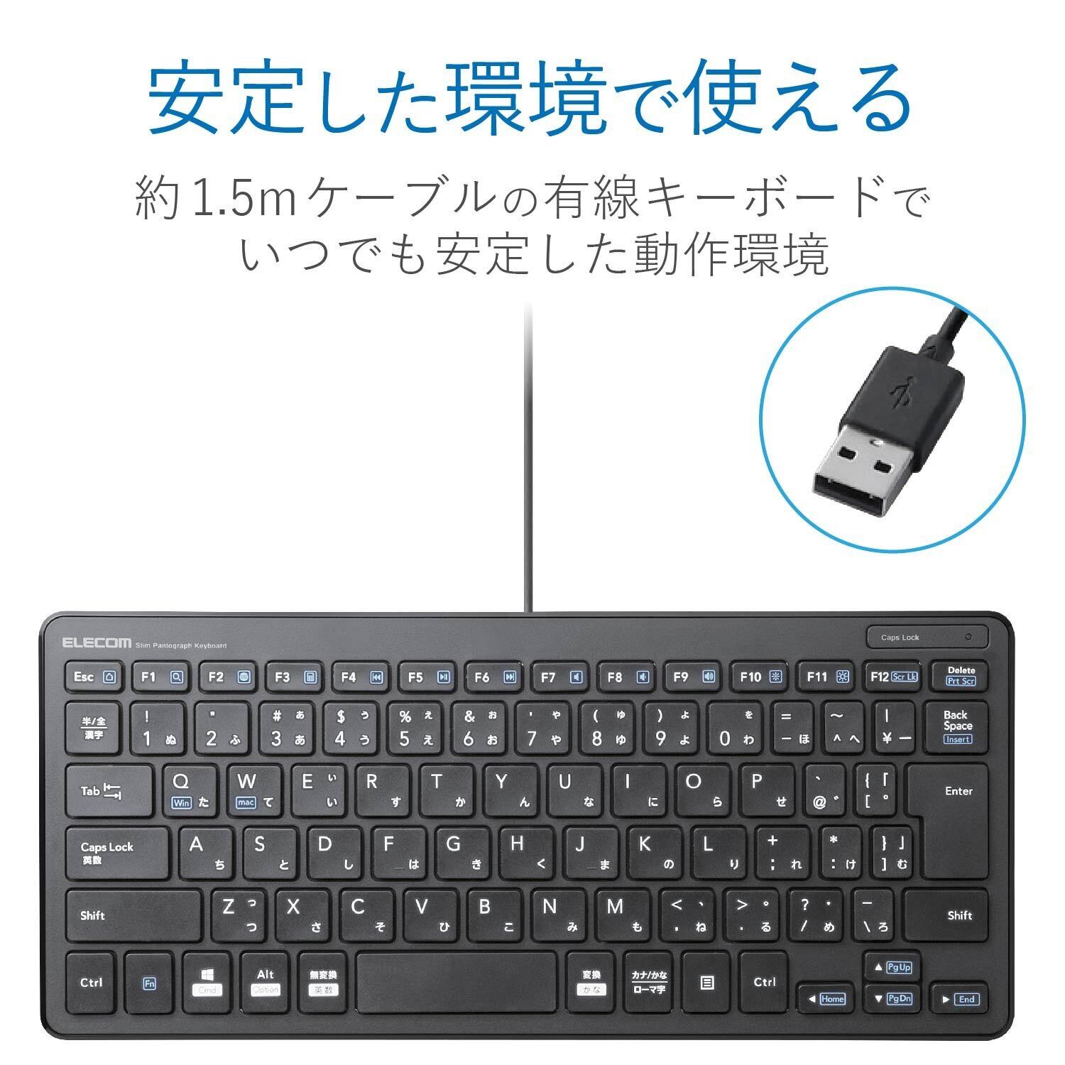 エレコム キーボード 有線 パンタグラフ ミニキーボード ブラック TK-FCP096BK