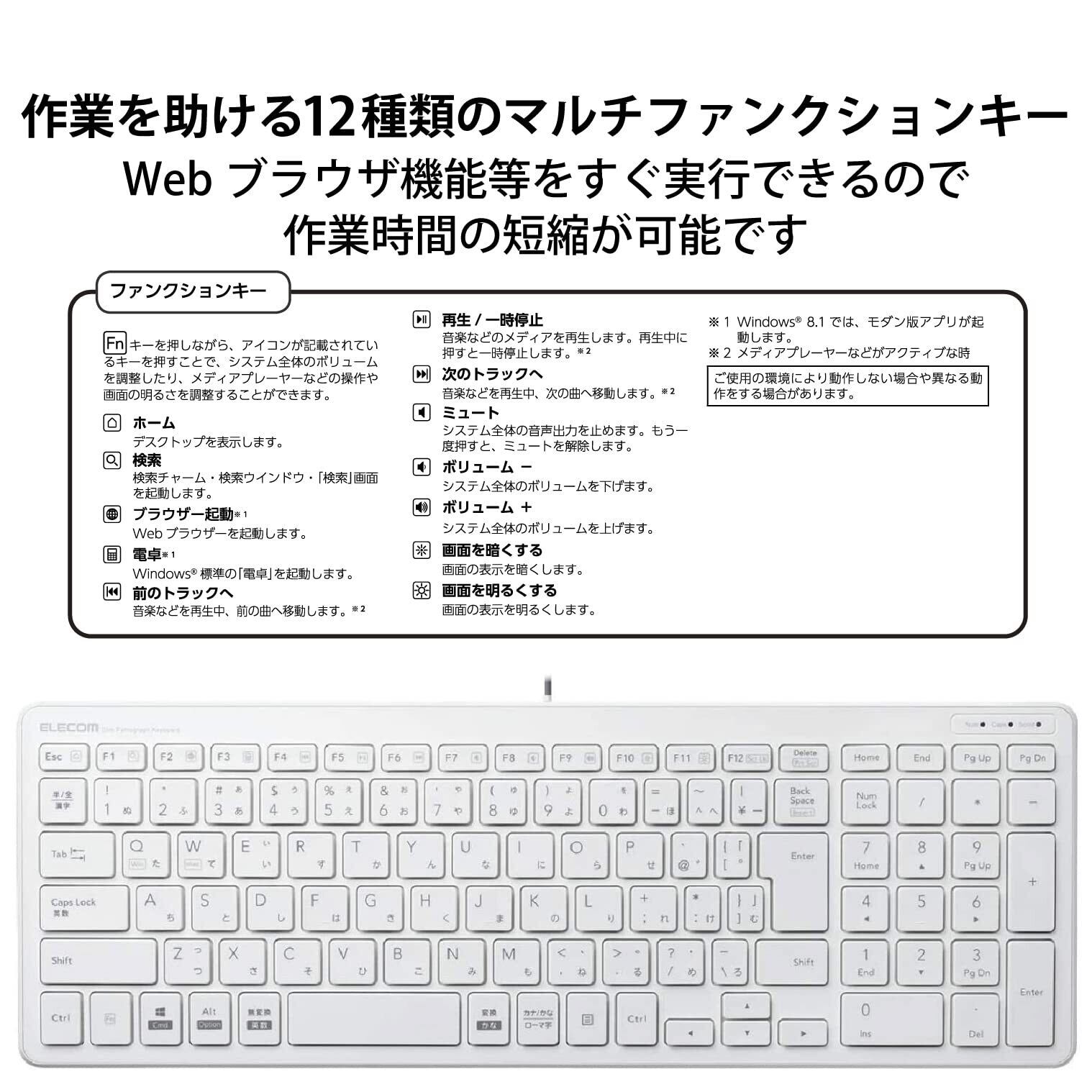 エレコム キーボード 有線 パンタグラフ コンパクトキーボード ホワイト TK-FCP097WH