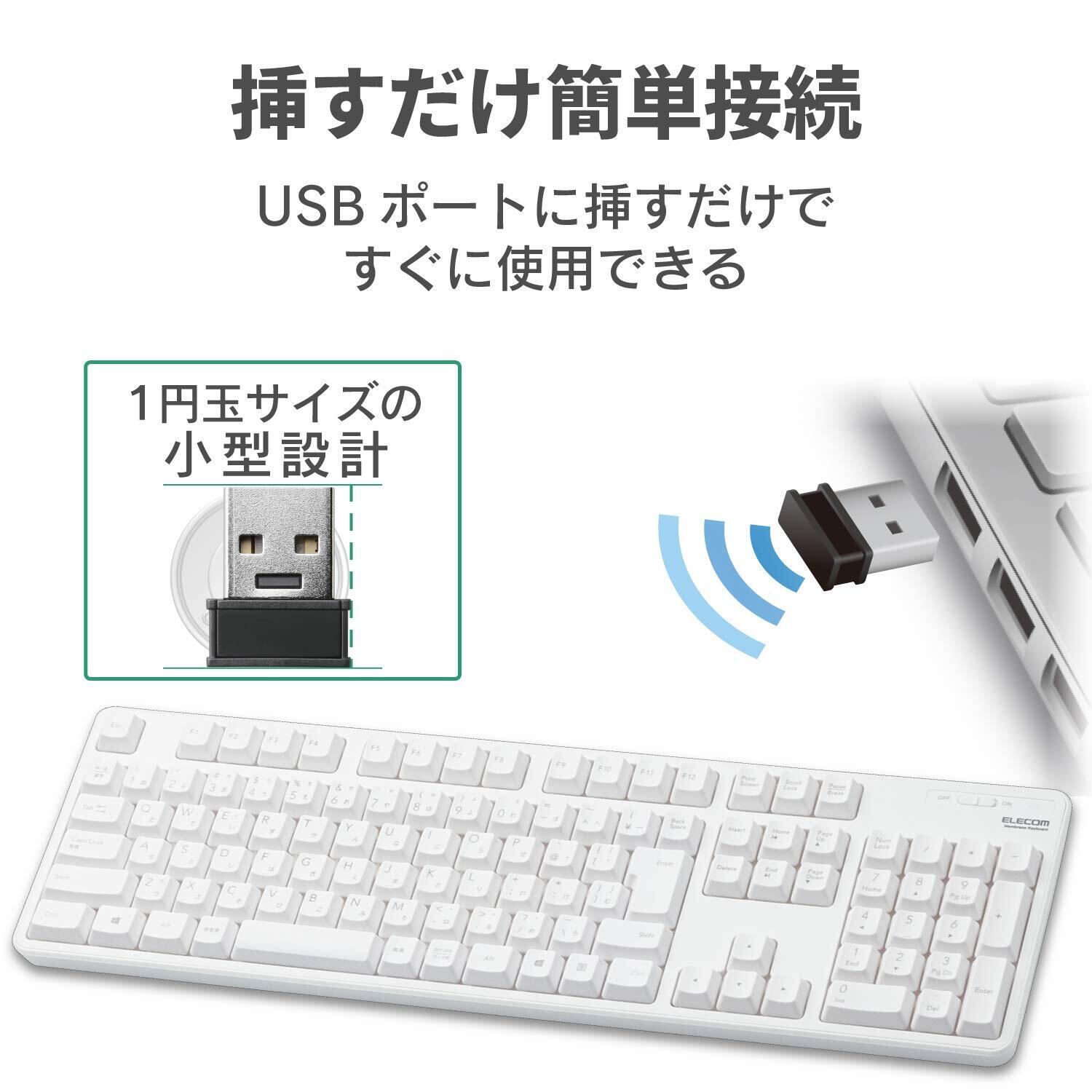 エレコム USB-A キーボード ワイヤレス (レシーバー付属) メンブレン フルキーボード ホワイト TK-FDM106TXWH
