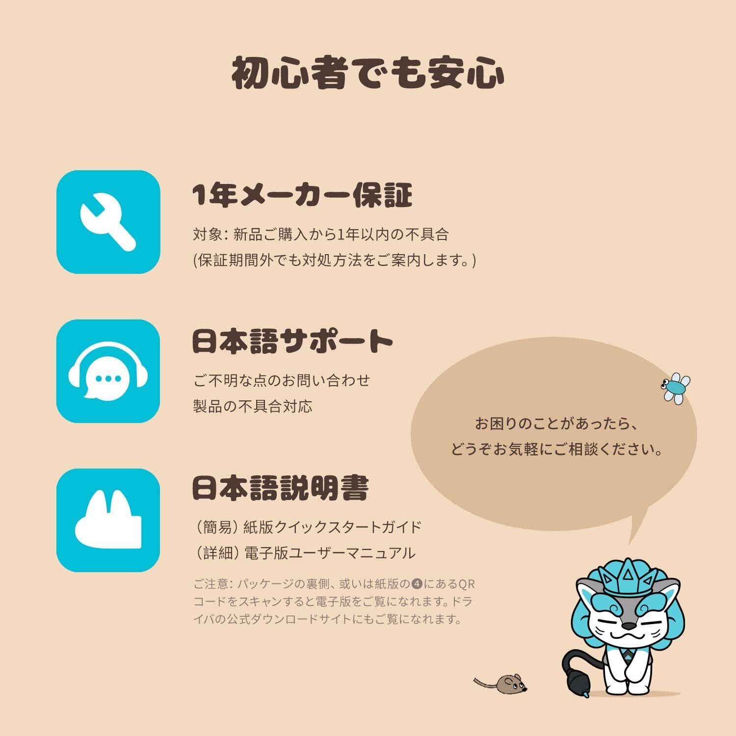 【初心者でも安心】❶日本語対応のカスタマーサポート:お問い合わせ・不具合対応は日本語でやりとりができます。❷日本語説明書:簡易の紙版クイックスタートガイドは同梱していて、詳しい電子版マニュアルはパッケージの裏側、或いは紙版の➃にあるQRコードをスキャンするとご覧になれます。