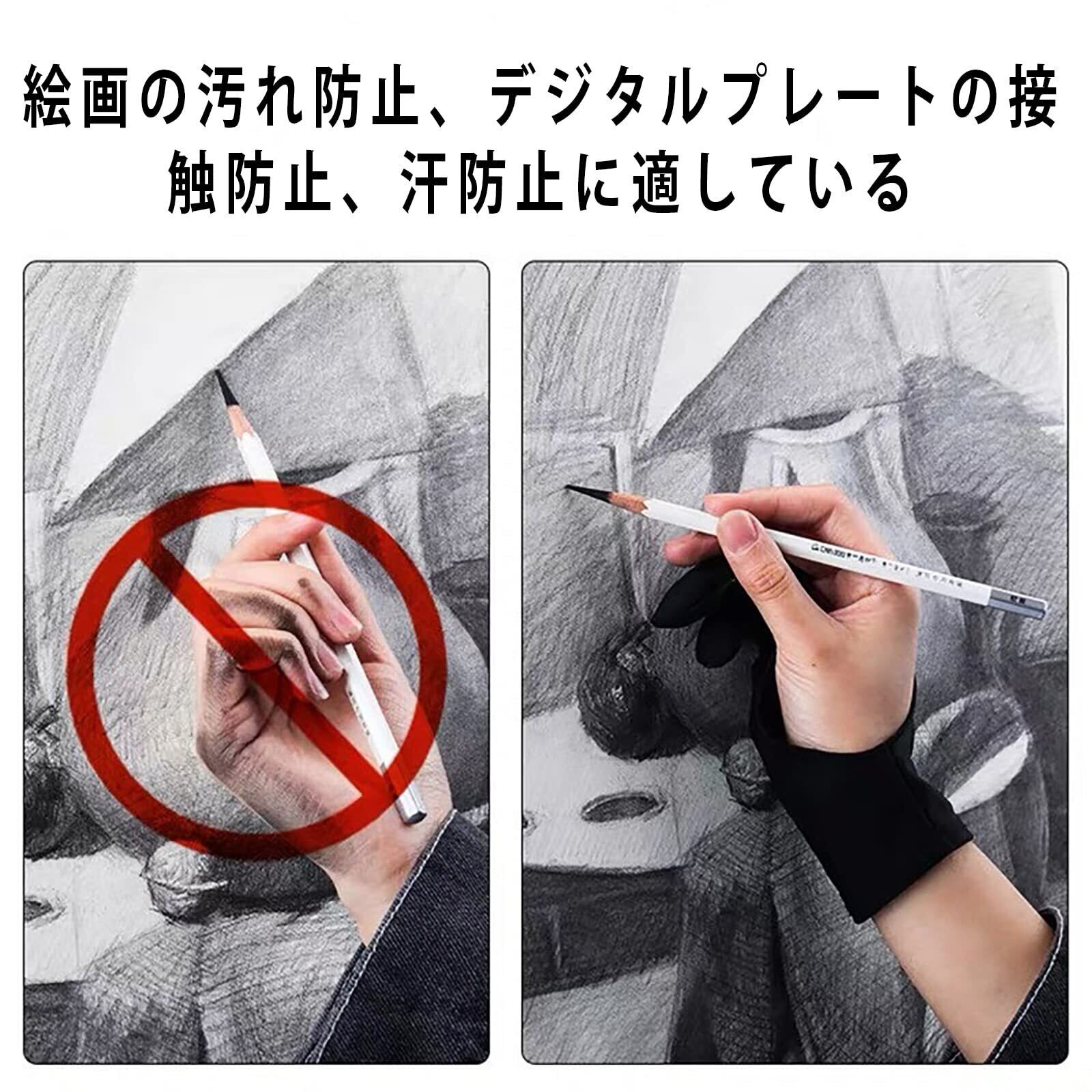 【摩擦を減らす】手袋で手とタブレットの表面摩擦を減らすことで、スムーズに描くことができます。タブレットやディスプレイに絵や文章を書くときは、摩擦を減らして書きやすい。