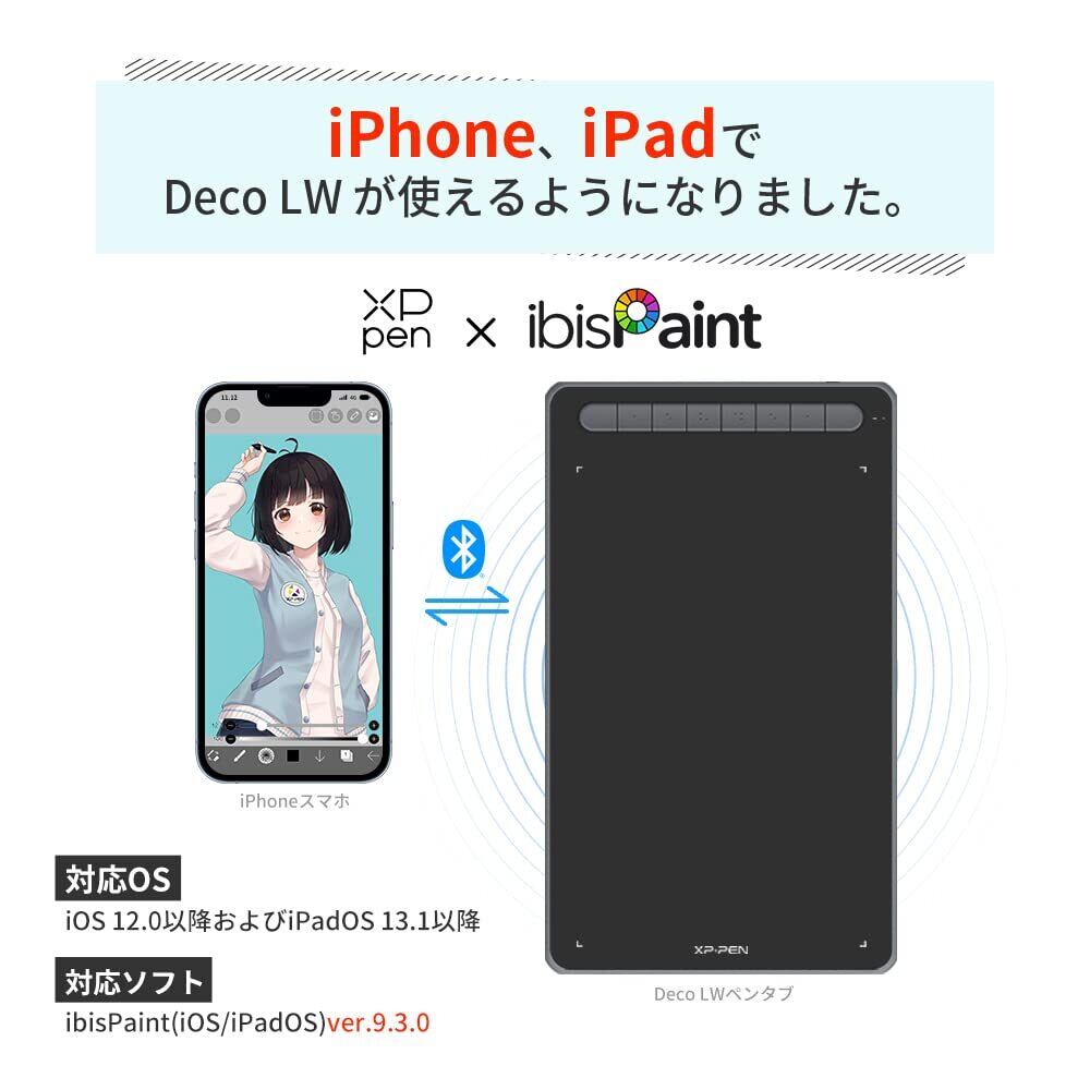 XPPen ペンタブ Deco LW ワイヤレス Bluetooth対応 板タブ ペンタブレット 10x6インチ X3チップ搭載ペン 傾き検知 選べる4色 デザイン テレワーク お絵かきソフト付 iPhoneのibisPaintに対応 Android/Windows/Mac/Chromebookに対応(ブラック)