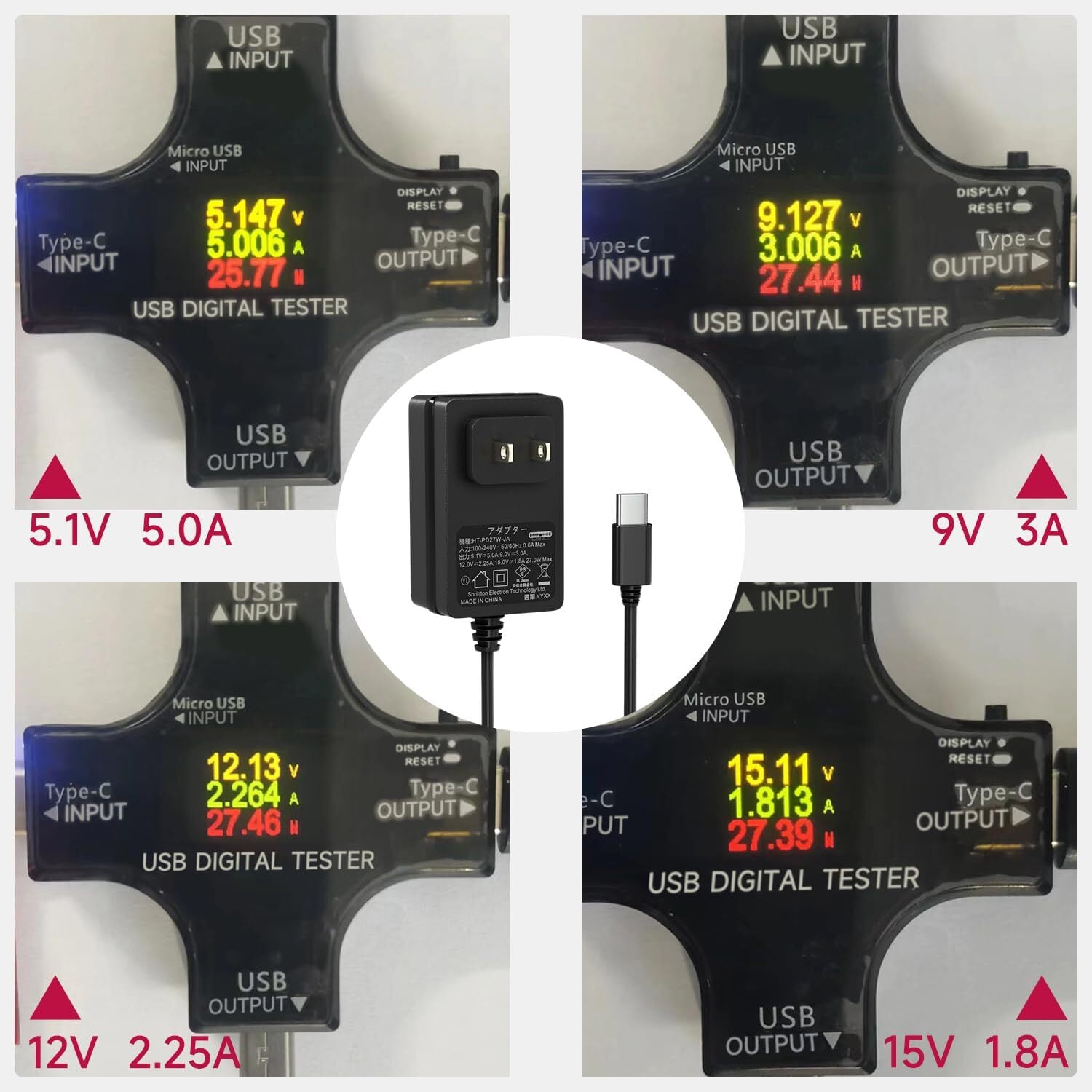出力:5.1V/5A、9V/3A、12V/2.25A、15V/1.8A 入力:AC 100-240V