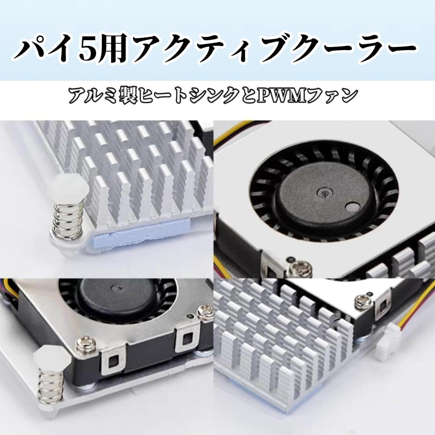 【Pi 5専用アクティブクーラー】専用設計のアルミ合金製ヒートシンクとファンの組み合わせで、高性能化とともに発熱が増加し【無限可能なパイ5】Raspberry Pi 5はさまざまな開発やアプリケーションシーンに適した強力で機能的なシングルボードコンピュータです。学習ツールとしても、実験プラットフォームとしても、組み込みシステムのコアコンポーネントとしても、Raspberry Pi 5はユーザーに新しい体験と可能性をもたらします。 たRaspberry Piを冷却します。PWMによる制御にも対応し、現在のCPU温度に合わせてファンオン・オフや回転数が自動制御されます。 本製品はラズベリーパイ5としか使用できませんのでご注意ください。