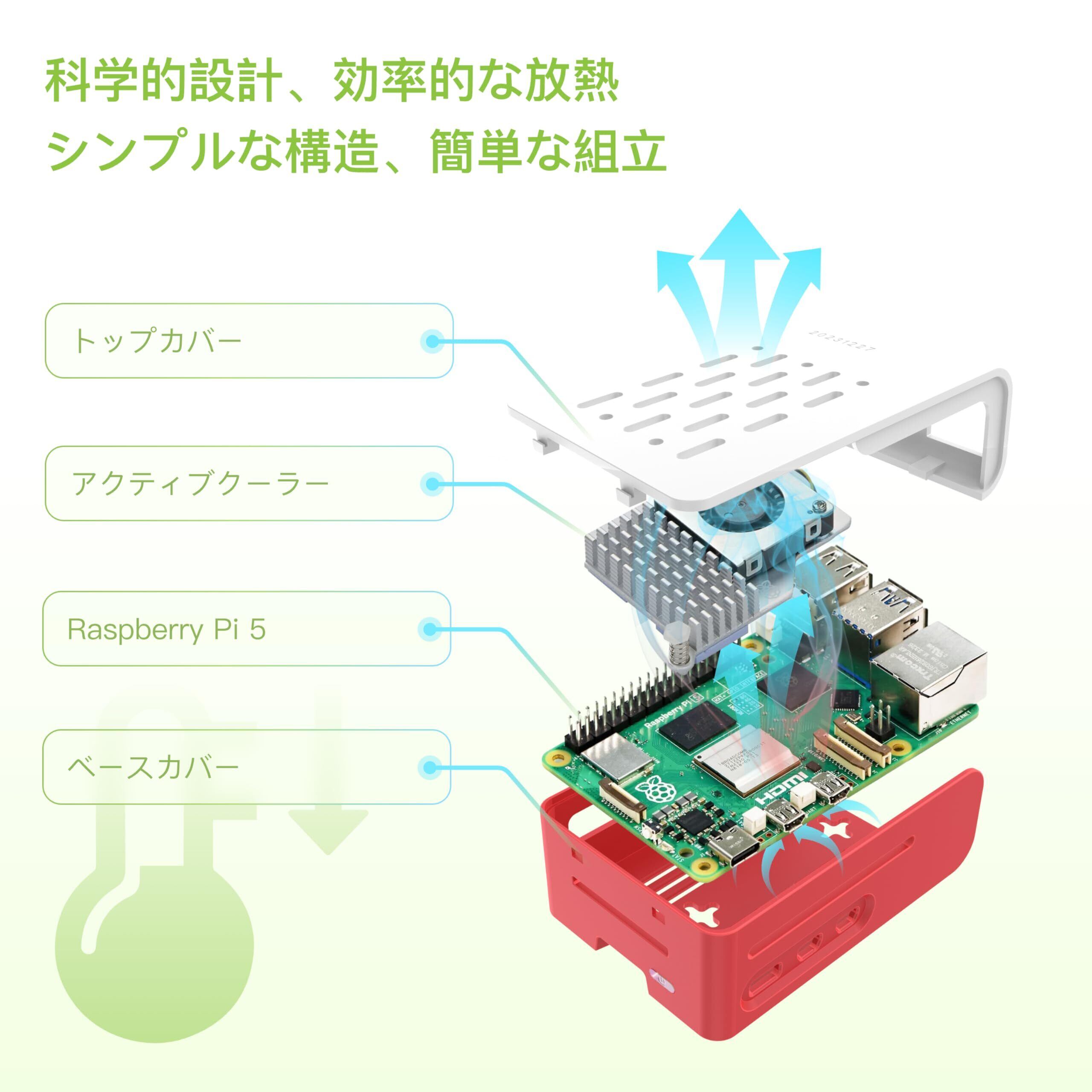 効率的な冷却システム:TRASKIT製のアクティブクーラーは、アルミニウム製のヒートシンクとPWMファンを組み合わせ、Raspberry Pi5を最適な動作温度に保ち、さまざまなアプリケーションにおけるシステムの安定性を確保します。