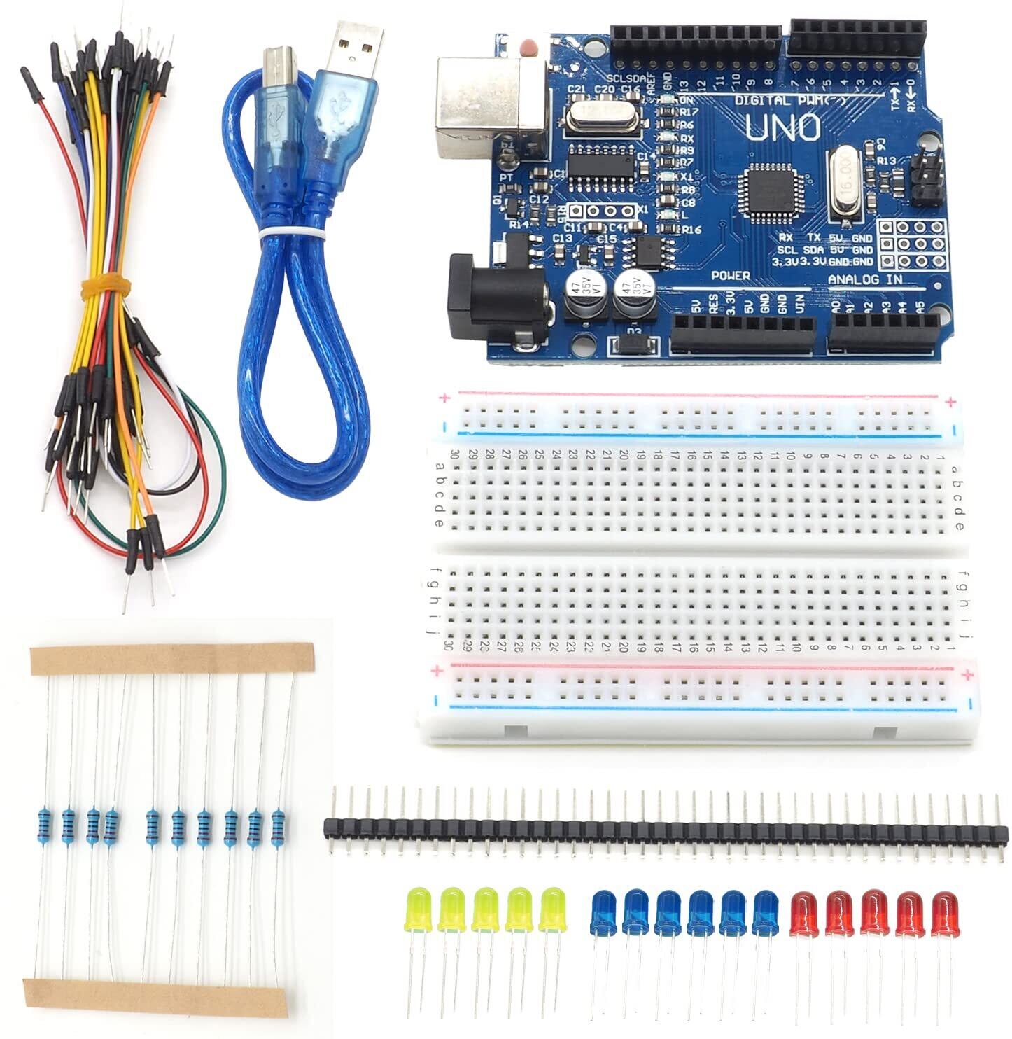 Arduino UNO R3 UNO互換ボード MEGA328P CH340G ブレッドボード LED USBケーブル ジャンパー線 抵抗 樹脂ケース 電子工作・実験キット