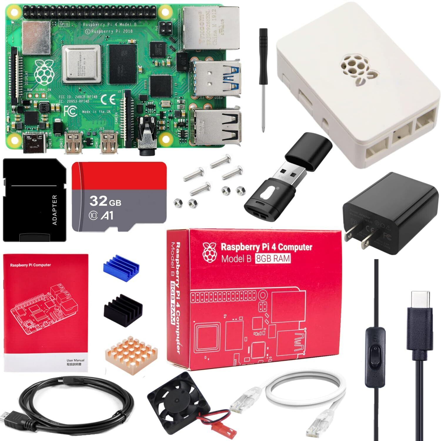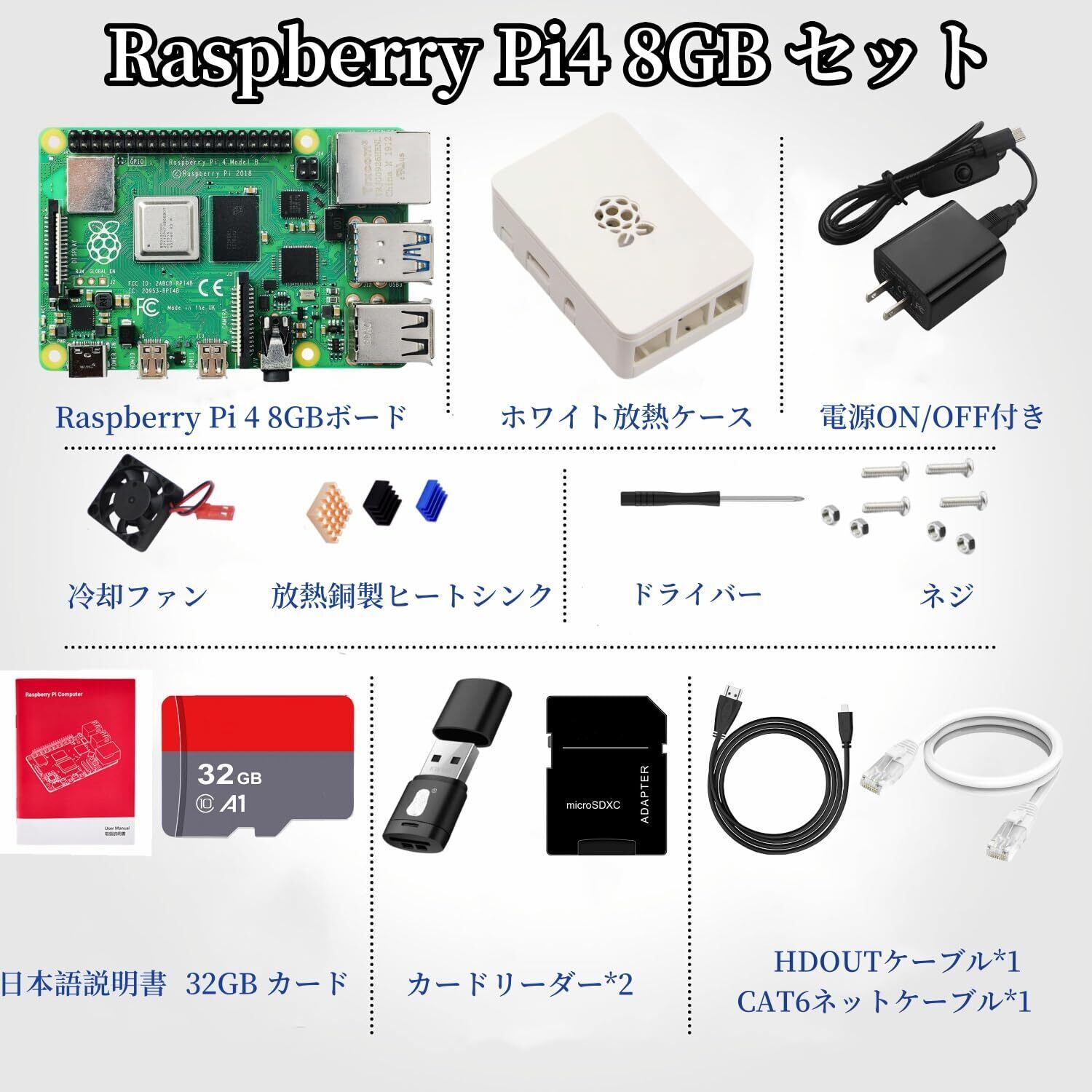 【Pi4セット内容】VESIRI Raspberry Pi4 8GBセットには、Raspberry Pi4 8GBボード*1(技適マーク付)、32GB カード*1、ホワイト放熱ケース*1、カードリーダー*2、USB Type-C電源アダプターとON/OFF付き電源ケーブル*1、HDOUTケーブル*1、CAT6ネットケーブル*1、放熱銅製ヒートシンク*3、冷却ファン*1、ドライバー*1、日英説明書*1、豊富な付属品が含まれています。ラズベリーパイ熱狂者に最適です。1年のがあり、ご安心ください。