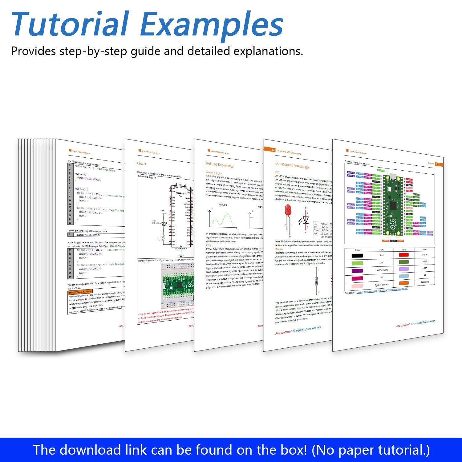 Freenove Raspberry Pi Pico ボード プレサルダードヘッダー搭載,デュアルコア Arm Cortex-M0+ マイクロコントローラー,開発ボード,Python C Java コード,チュートリアル サンプルプロジェクト