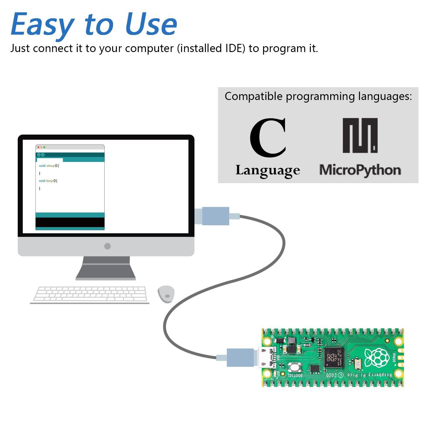 使いやすい:USBケーブルを使用してボードをコンピューター(IDEがインストールされている)に接続するだけでプログラムできます