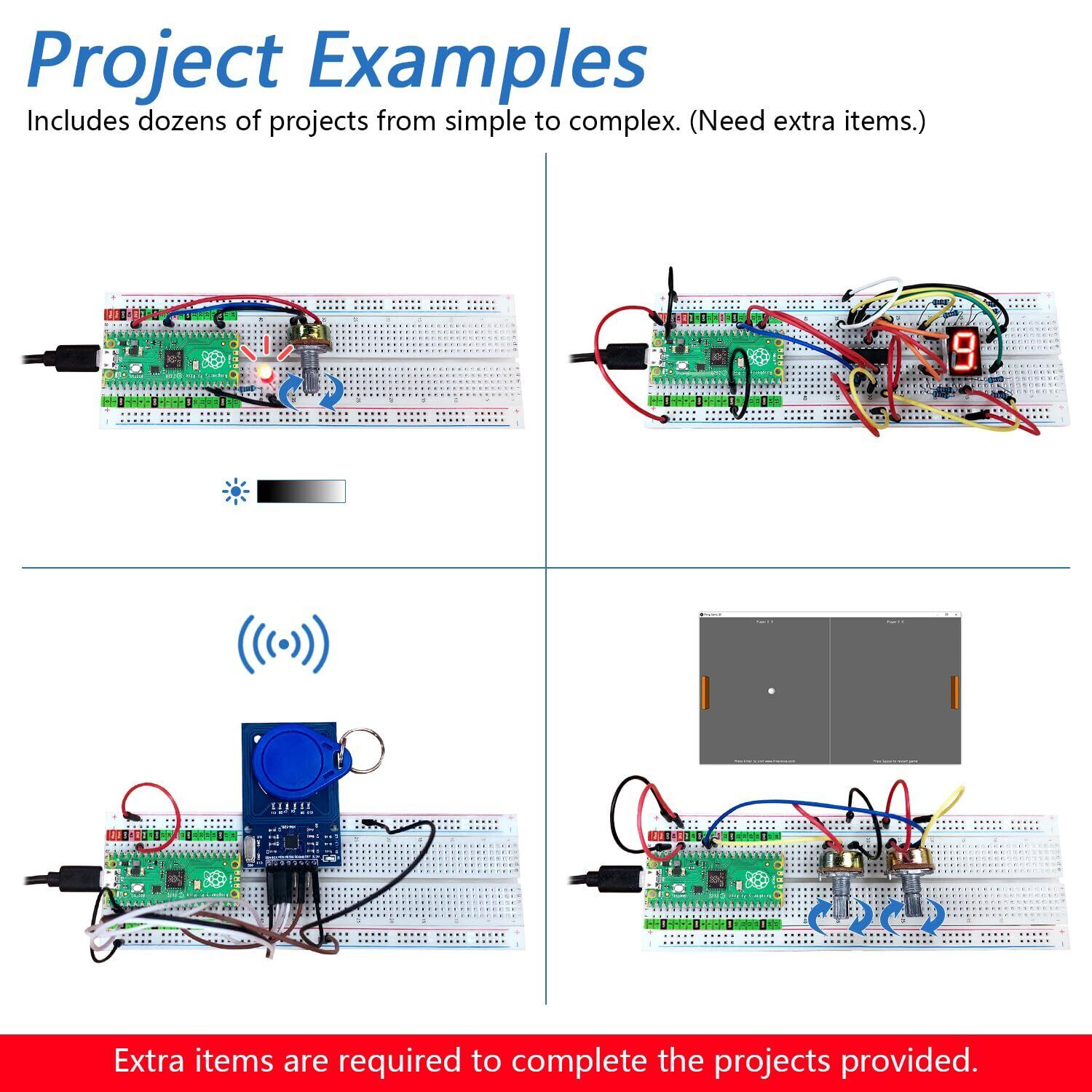 サンプルプロジェクト:各プロジェクトには回路図、接線図、完全なコードと詳細な説明が含まれています(追加のアイテムが必要です)