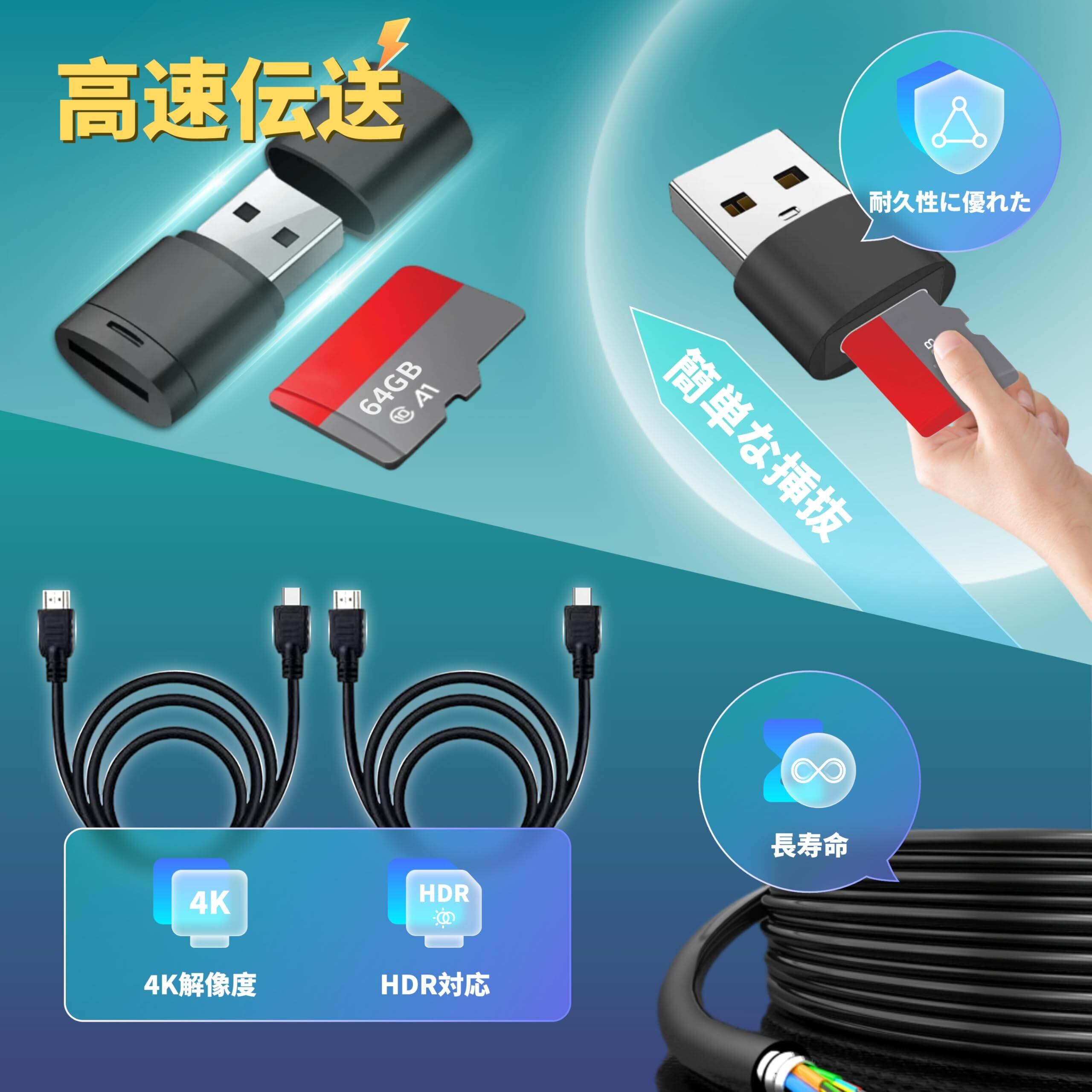 「高品質アクセサリー」2本の映像ケーブルを装備したPi 5キットは、4K解像度とHDR表示に対応し、鮮明な画像と高品質なオーディオを提供します。 さらに、付属のカードリーダーとSDカードは、高速転送、簡単なプラグアンドプレイ、優れた耐久性をサポートし、長寿命と信頼性の高いパフォーマンスをします。